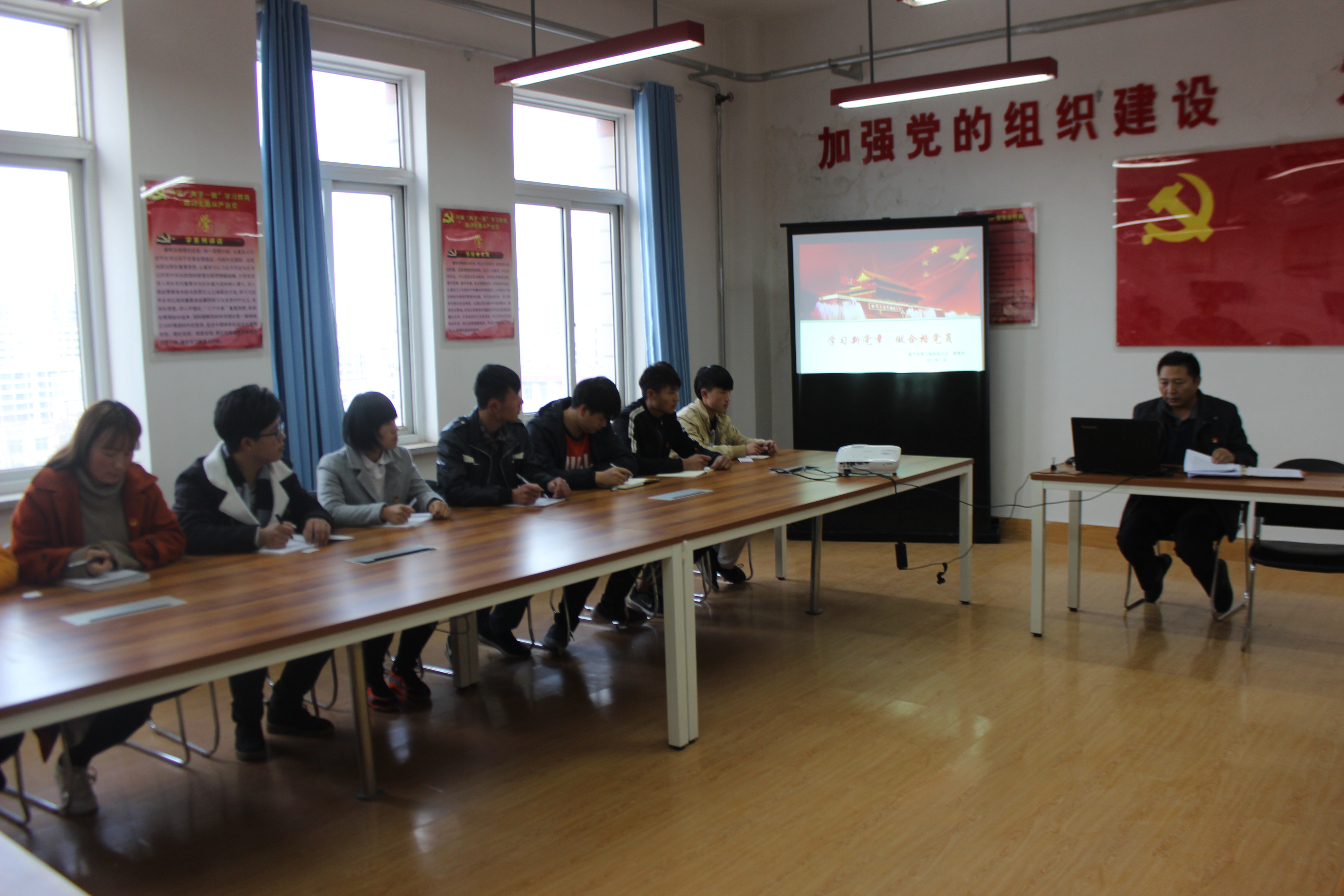 為深入學(xué)習(xí)黨的十九大會議精神,電子信息工程系黨總支于2017年11月29日下午在尚德樓五樓黨員活動室開展了書記講黨課活動。黨課由袁青年同志主講,題目為《學(xué)習(xí)黨章 踐行黨章》,全體黨員和入黨積極分子參加了黨課學(xué)習(xí)。
