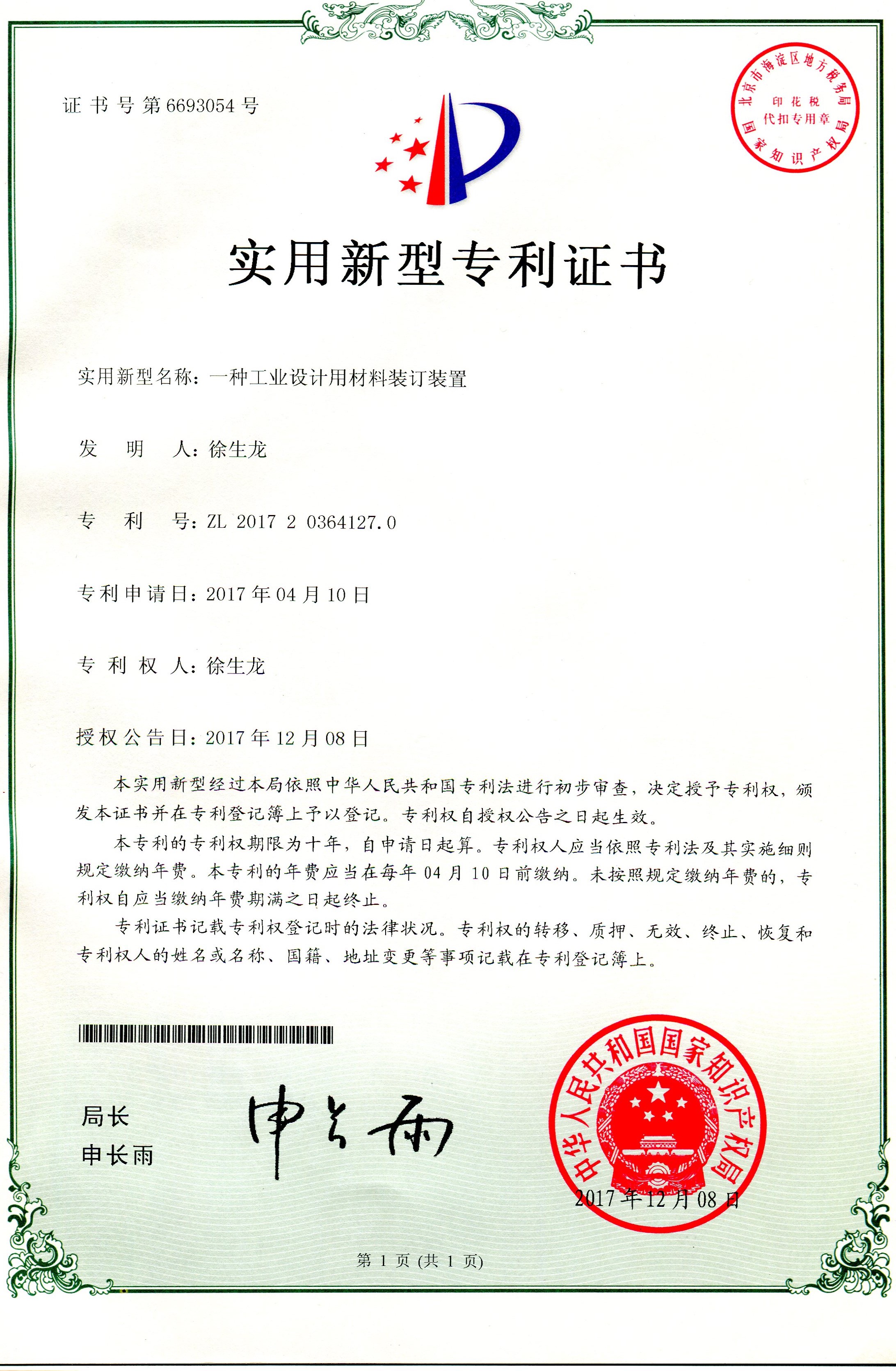 科研成果---實用新型專利:一種工業(yè)設(shè)計用材料裝訂裝置