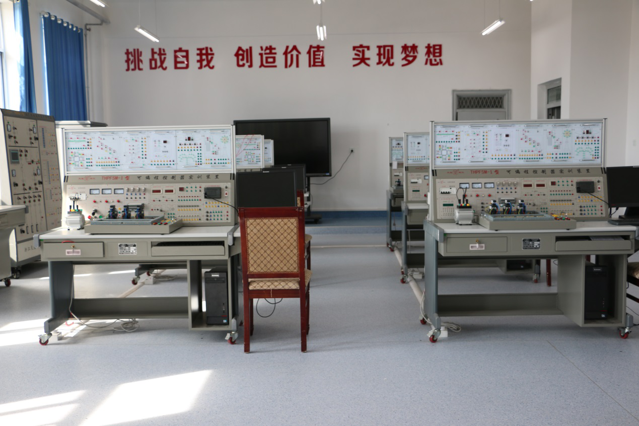 實訓(xùn)功能:本實訓(xùn)室擁有供配電技術(shù)實訓(xùn)裝置、電力系統(tǒng)繼電保護實訓(xùn)裝置??删幊炭刂破鲗嵱?xùn)裝置共8套。主要服務(wù)課程為《電子電路分析與應(yīng)用》、《PLC》、《電氣安裝規(guī)劃與實施(電工)》、《供配電技術(shù)》等。