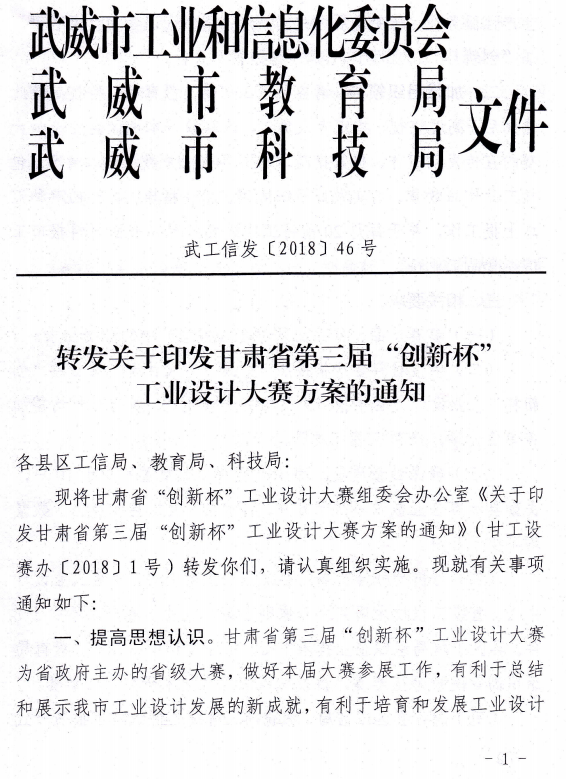 甘肅省“創(chuàng)新杯”工業(yè)設(shè)計大賽組委會辦公室關(guān)于印發(fā)甘肅省第三屆“創(chuàng)新杯”工業(yè)設(shè)計大賽方案的通知