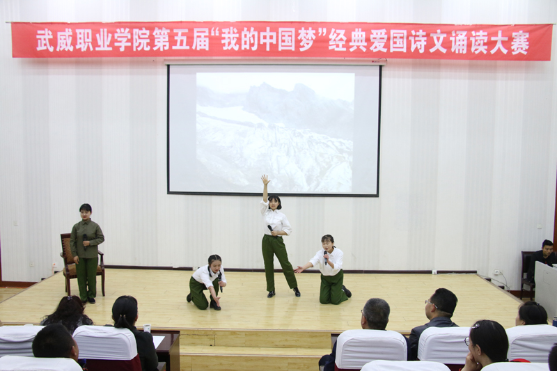 全場比賽以“我的中國夢”為切入點,誦詩抒情、借詞言志,傳承中華民族經(jīng)典愛國詩詞和優(yōu)秀傳統(tǒng)文化,培育與踐行社會主義核心價值觀。各參賽作品融入了歌曲、場景表演等多種藝術形式,進一步激發(fā)了同學們的愛國熱情和報國之志。經(jīng)過激烈角逐,醫(yī)學技術與信息管理系選送的作品《永遠的格桑梅朵》榮獲一等獎;人文藝術教育系選送的作品《我的墓碑》、護理系選送的作品《人民萬歲》榮獲二等獎;現(xiàn)代農業(yè)技術系選送的作品《我的爸爸》、汽車工程系選送的作品《海棠花祭》、建筑工程系選送的作品《中國軍魂》榮獲三等獎。
