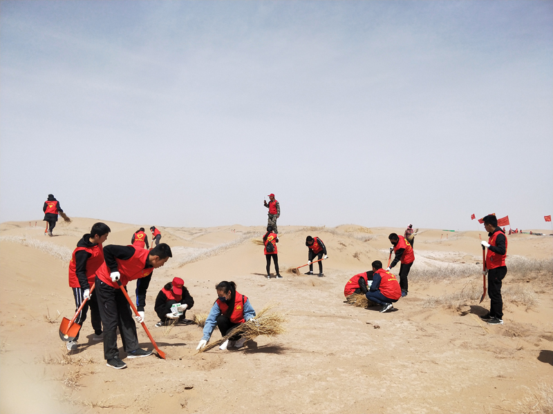 啟動(dòng)儀式結(jié)束后,學(xué)院志愿者和來自社會(huì)各界的400多名志愿者在技術(shù)人員的指導(dǎo)下,嚴(yán)格按照栽植梭梭“挖深坑、樹栽中、三埋兩踩一提根”的技術(shù)操作要求,通力協(xié)作,密切配合,認(rèn)真做好挖坑、放梭梭、施肥、埋沙等各個(gè)環(huán)節(jié)的操作,有效保障了梭梭的成活率。經(jīng)過不懈努力,共栽植梭梭5萬(wàn)余株,為拯救民勤綠洲貢獻(xiàn)了自己的青春力量。
