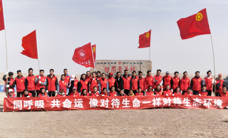 為傳播綠色發(fā)展理念,引導(dǎo)青年學(xué)生牢固樹立“綠水青山就是金山銀山”的理念,積極投身植樹造林、美化環(huán)境、治沙壓沙等生態(tài)文明建設(shè)的生動(dòng)實(shí)踐,4月14日,團(tuán)省委在民勤縣昌寧鎮(zhèn)四方墩志愿者生態(tài)林基地舉辦 “構(gòu)筑生態(tài)屏障·助力脫貧攻堅(jiān)”暨2018年“甘肅青年林”春季植樹活動(dòng)啟動(dòng)儀式。學(xué)院團(tuán)委組織53名志愿者參加活動(dòng)啟動(dòng)儀式和義務(wù)植樹壓沙活動(dòng)。