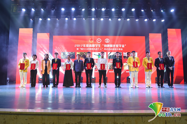 4月19日,2017年度高職學(xué)生“勁牌陽光獎學(xué)金”暨“踐行工匠精神先進(jìn)個人”尋訪活動頒獎分享會在寧波職業(yè)技術(shù)學(xué)院舉行?;顒佑蓤F(tuán)中央學(xué)校部、全國學(xué)聯(lián)秘書處、勁牌有限公司聯(lián)合開展,共評選出10名特別獎獲得者和300名優(yōu)秀獎獲得者。我院人文藝術(shù)系林露同學(xué)榮獲2017年度高職學(xué)生“勁牌陽光獎學(xué)金”暨“踐行工匠精神先進(jìn)個人”優(yōu)秀獎。