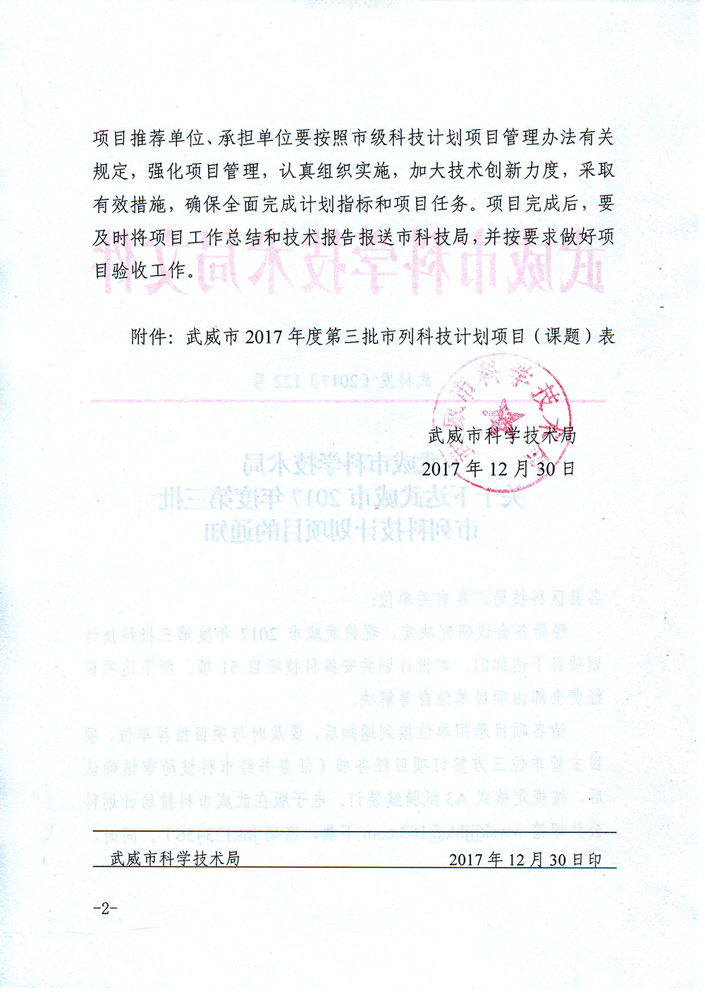 轉(zhuǎn)發(fā)武威市科學(xué)技術(shù)局關(guān)于下達(dá)武威市2017年度第三批市列科技計(jì)劃項(xiàng)目的通知