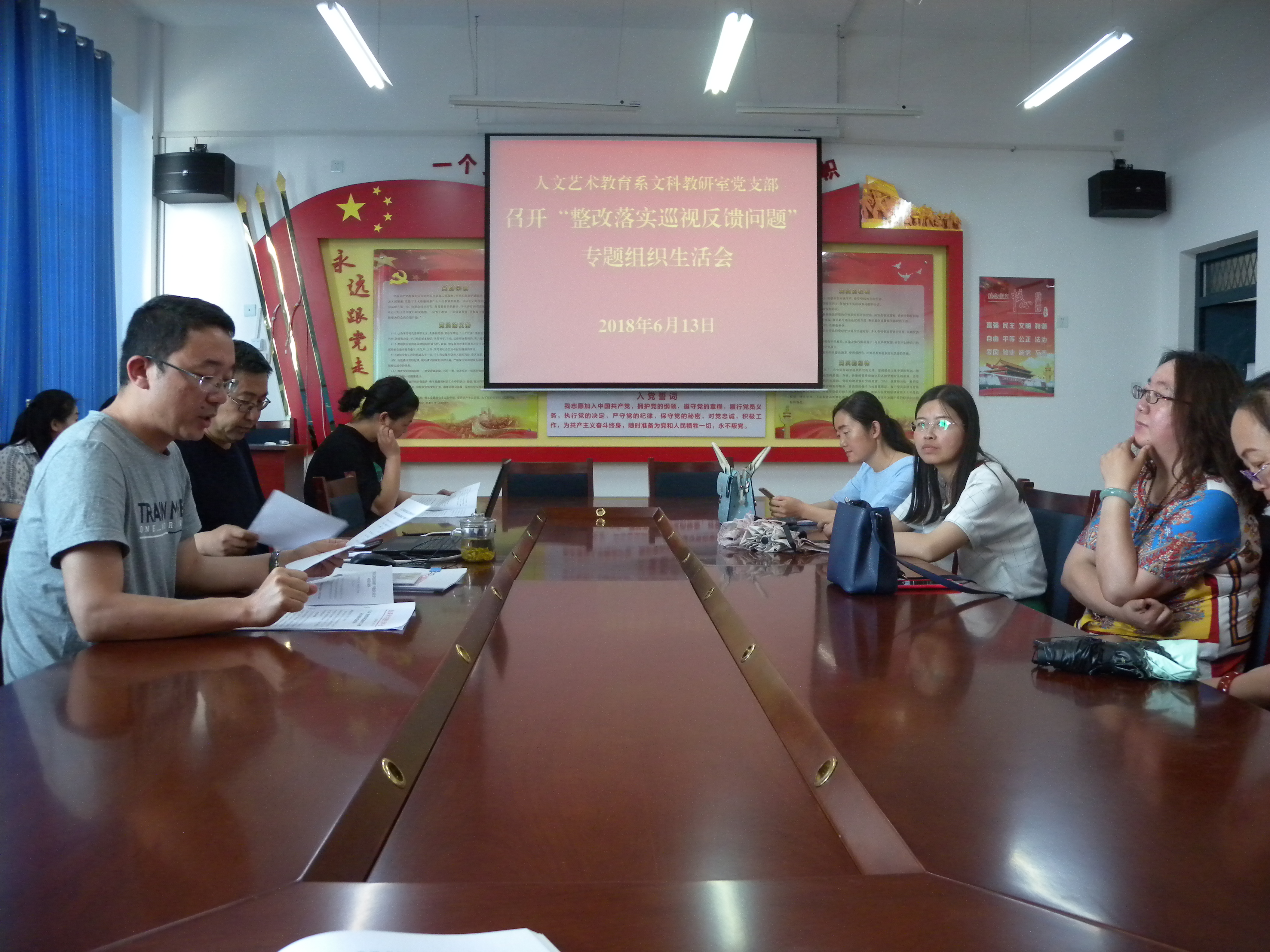 根據(jù)學院《關于以“整改落實巡視反饋問題”為主題召開專題組織生活會的通知》(武職院組函〔2018〕35號)精神,6月13日,人文藝術(shù)教育系黨總支文科教研室黨支部和音體教研室黨支部在勵勤樓209黨員活動室分別召開了以“整改落實巡視反饋問題”為主題的組織生活會。會議分別由支部書記主持,黨支部全體黨員參加。