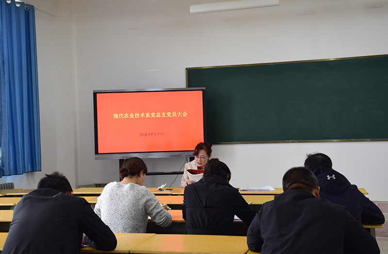 9月17日,現代農業(yè)技術系在行樹樓305室召開全體黨員大會,系黨總支書記晏素珍主持會議。