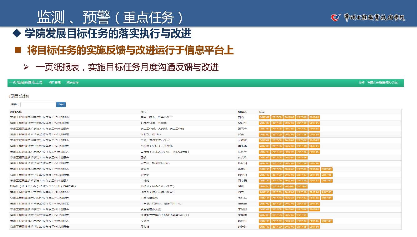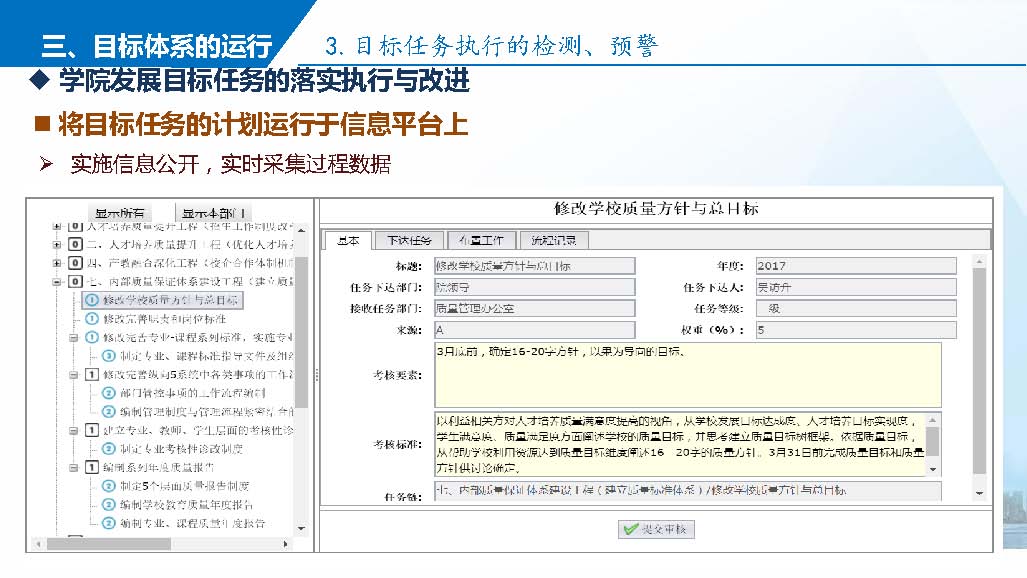 學院目標任務體系建立與運行實物