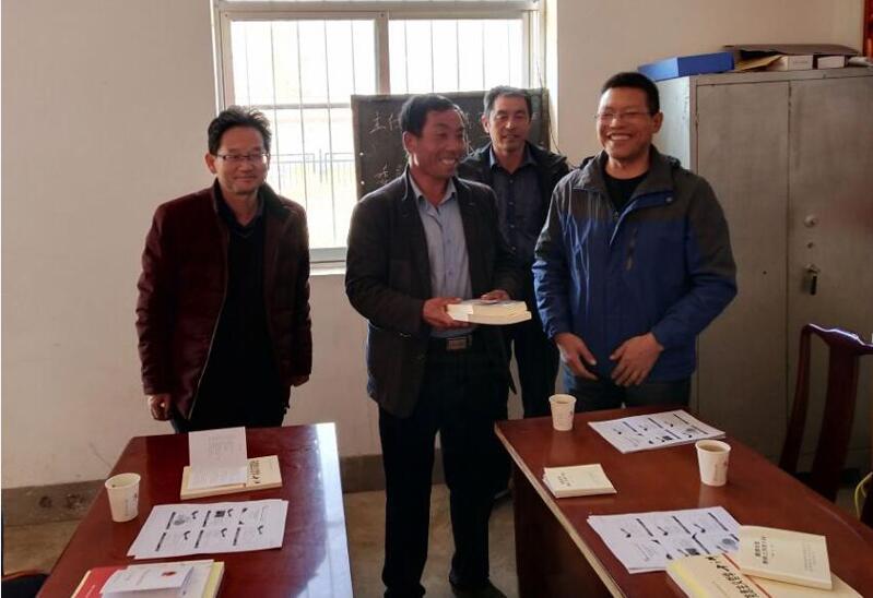 黨課結(jié)束后,趙明書記和王永緒副院長向村委會(huì)贈(zèng)送了《習(xí)近平的七年知青歲月》《習(xí)近平新時(shí)代中國特色社會(huì)主義思想三十講》《怎樣做合格黨員》《馬克思主義哲學(xué)十講》《中華人民共和國憲法宣傳手冊》等書籍。
