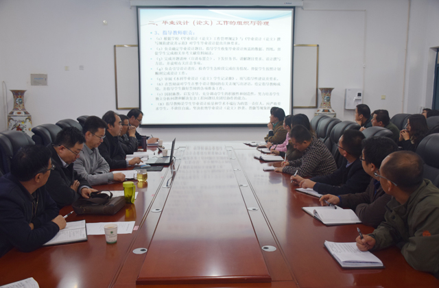 畢業(yè)設(shè)計(jì)是學(xué)生在校學(xué)習(xí)的最后一個(gè)環(huán)節(jié),也是最重要的一個(gè)環(huán)節(jié)。使學(xué)生由學(xué)校學(xué)習(xí)理論知識(shí)向社會(huì)實(shí)踐過(guò)渡轉(zhuǎn)變的一個(gè)重要環(huán)節(jié),也是對(duì)所學(xué)知識(shí)綜合應(yīng)用的一個(gè)過(guò)程。副院長(zhǎng)姚翔飛要求全體教師認(rèn)真學(xué)習(xí)領(lǐng)會(huì),深入研究,將各位專家教授講解的內(nèi)容內(nèi)化吸納,積極承擔(dān)并高質(zhì)量的完成學(xué)院2017屆畢業(yè)生的畢業(yè)設(shè)計(jì)指導(dǎo)工作。為學(xué)院不斷提升教育教學(xué)水平,奠定堅(jiān)實(shí)的基礎(chǔ)。