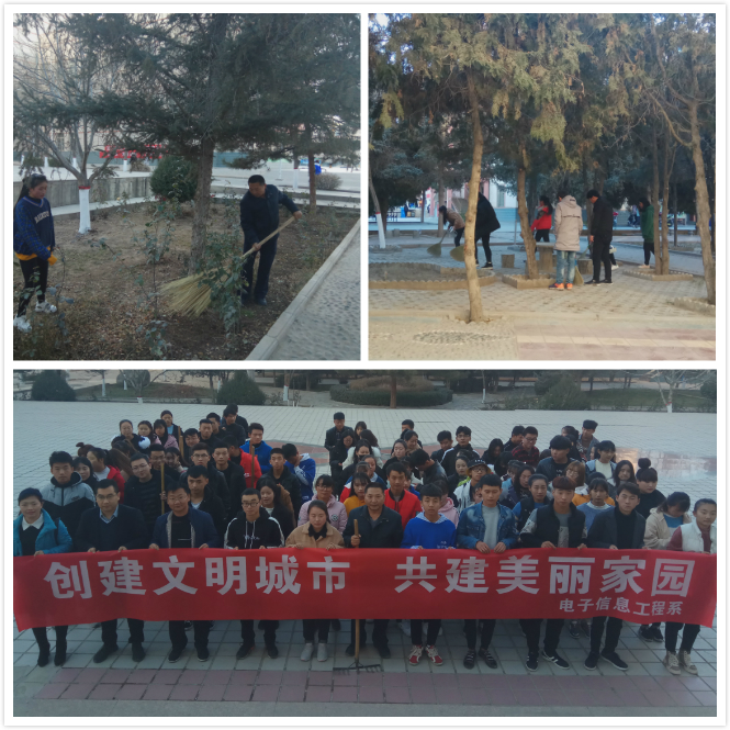 11月22日下午,電子信息工程系黨總支組織黨員教師、入黨積極分子和2018級(jí)學(xué)生入黨申請(qǐng)人開(kāi)展了環(huán)境衛(wèi)生治理工作,清理校園衛(wèi)生死角,用實(shí)際行動(dòng)助推武威市文明城市創(chuàng)建和全省文明校園創(chuàng)建。