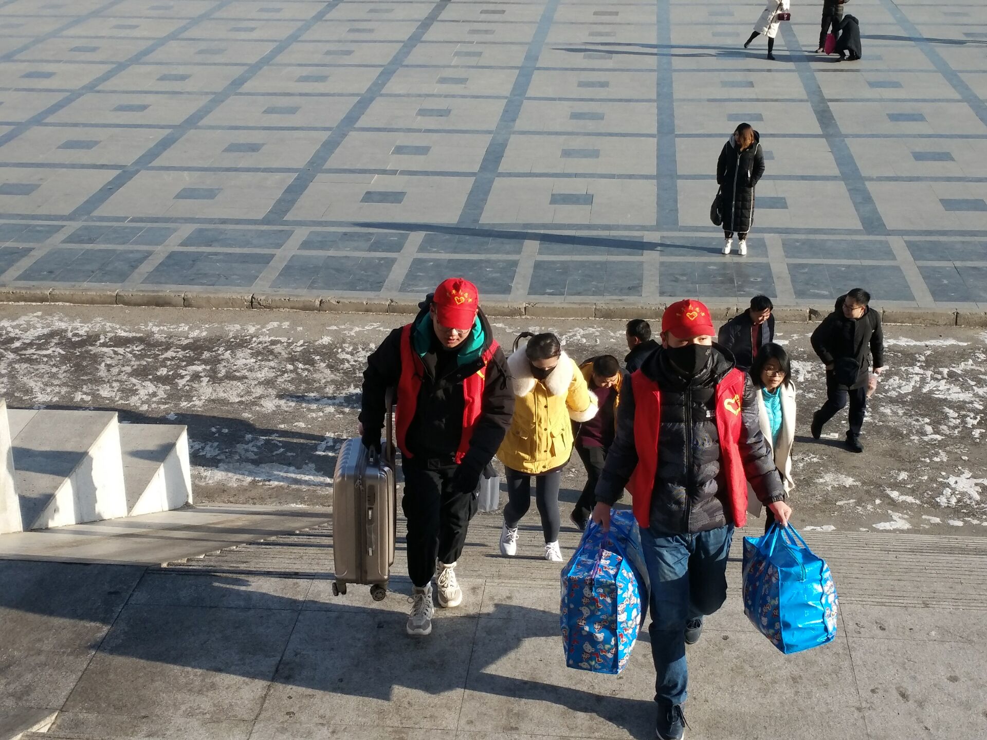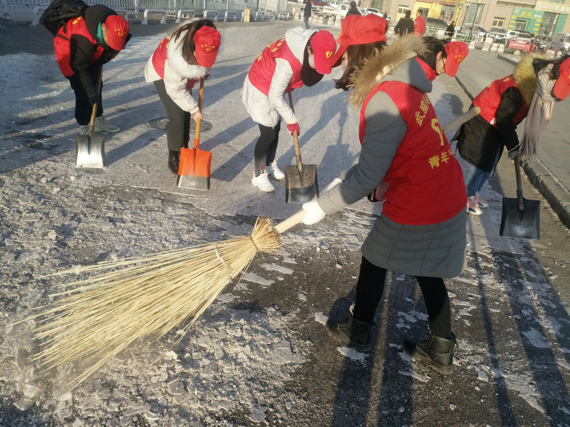 當天上午,志愿者們攜著冬日的暖陽將愛撒播在的服務的每一個角落,忙的不亦樂乎。學生志愿者一個個身穿紅馬夾穿梭在火車站及汽車站一帶幫助行人提東西、拉皮箱,清掃路面積雪、清除街道長期殘留的垃圾等。志愿者們用自己的雙手拾撿著行人留下的煙頭和瓜子皮,他們不畏嚴寒,默默地奉獻著熱情和溫暖。經(jīng)過的人們紛紛向志愿者們投向了贊許與致謝的目光。