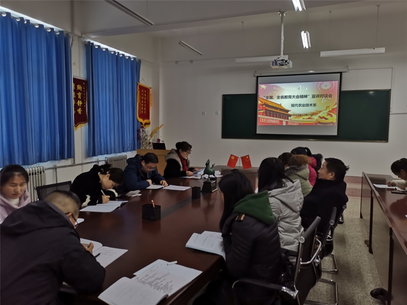 12月24日,現(xiàn)代農(nóng)業(yè)技術(shù)系在行書(shū)樓教學(xué)區(qū)309辦公室召開(kāi)宣講“全國(guó)、全省教育大會(huì)精神”。宣講對(duì)談會(huì)由系黨總支書(shū)記晏素珍主持,全系教師參加并發(fā)言交流教育大會(huì)精神。
