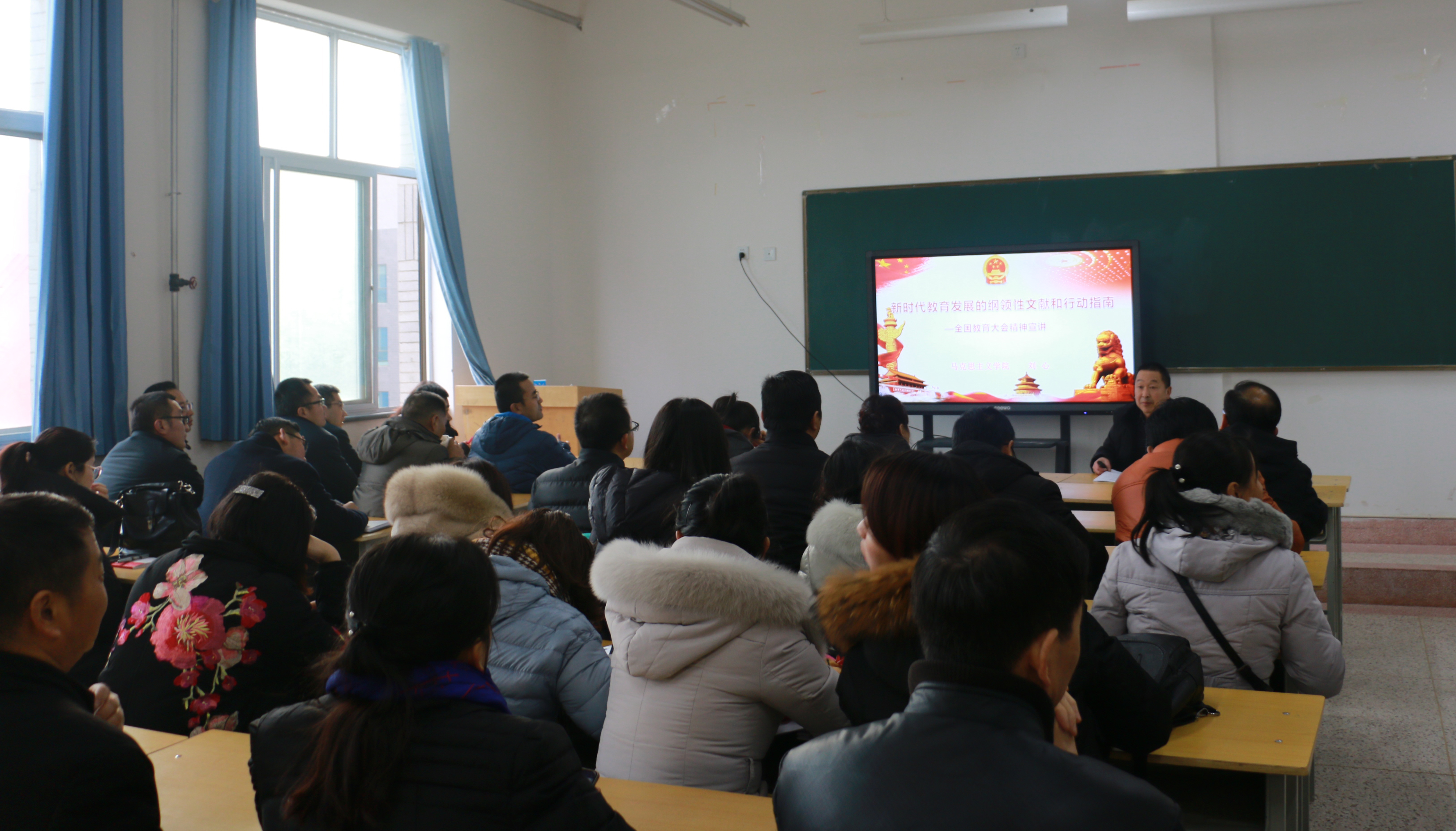 宣講會上,劉心傳達(dá)了全國、全省教育大會精神,并圍繞教師如何貫徹落實(shí)大會精神作了專題報(bào)告。