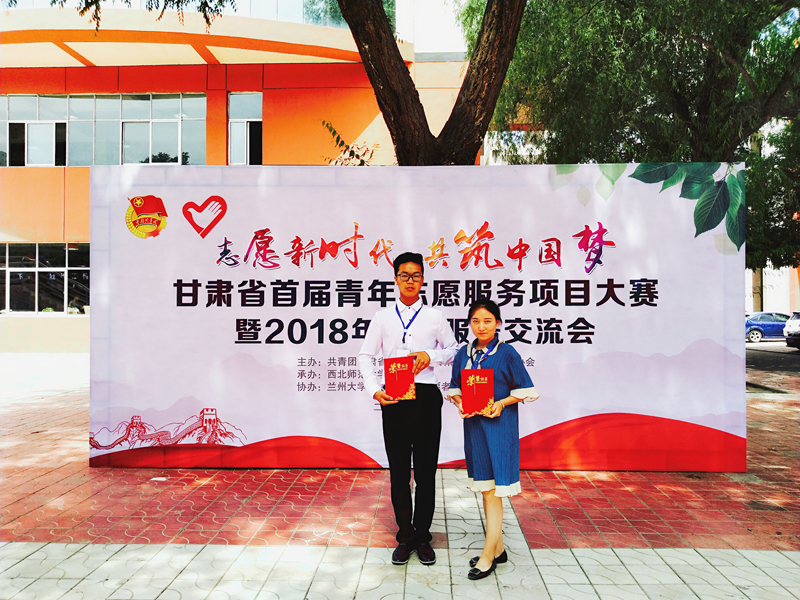 2018年6月20日—22日,甘肅省首屆青年志愿服務(wù)項(xiàng)目大賽暨2018年志愿服務(wù)交流會(huì)在蘭州西北師范大學(xué)學(xué)生發(fā)展中心舉行,學(xué)院團(tuán)委推選的兩個(gè)項(xiàng)目參加了此次大賽。共青團(tuán)甘肅省委書記趙立香、西北師范大學(xué)校長(zhǎng)劉仲奎出席本次大賽閉幕式。