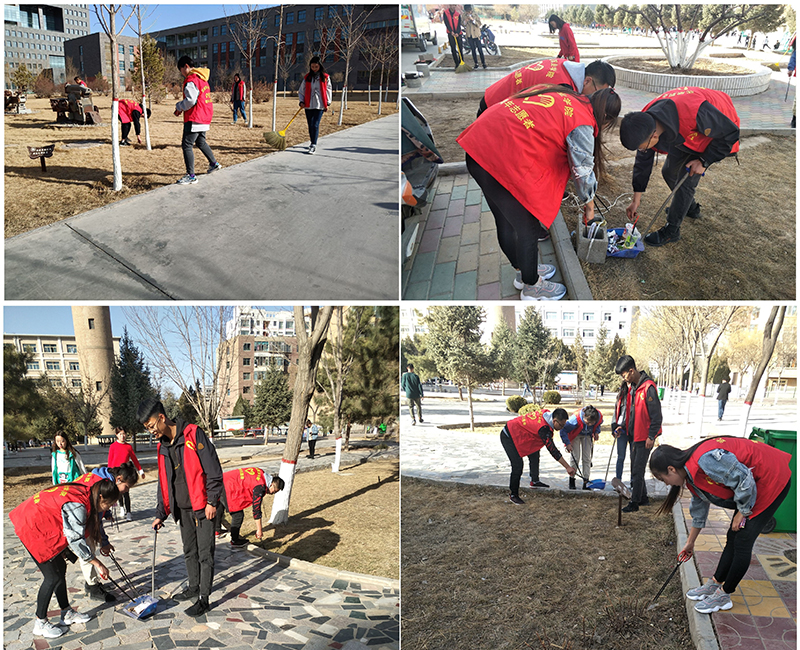 3月20日,青年志愿者在校園內(nèi),開(kāi)展“美麗校園”志愿服務(wù)活動(dòng),通過(guò)撿拾垃圾和煙頭,維護(hù)校園環(huán)境。