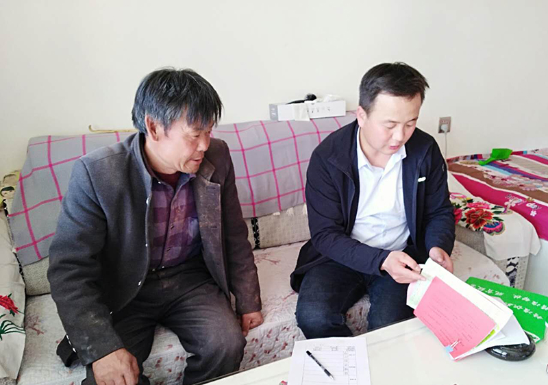 陽春四月,大地復(fù)蘇。迎著和煦的春風(fēng),張富國與黑松驛鎮(zhèn)政府簽定了學(xué)院對口健康扶貧古浪縣口腔治療項(xiàng)目協(xié)議書,到幫扶戶張德龍父母家中,看望身患重病的老人,送上慰問品,與他們面對面交流,關(guān)心他們的生活起居。幫扶干部進(jìn)村入戶與幫扶戶談心溝通,聚焦“兩不愁、三保障”,全面了解家庭情況,認(rèn)真商議脫貧措施和方式,對“一戶一策”中2018年增收情況和2019年幫扶措施進(jìn)行了溝通認(rèn)可,仔細(xì)算清收入支出賬,有針對性地完善幫扶舉措,制定完善了符合農(nóng)戶實(shí)情、群眾明白認(rèn)可、能夠具體落地的“一戶一策”,雙方一致認(rèn)為2018年幫扶成績明顯,2019年幫扶措施切實(shí)可行,并在愉快輕松的氛圍中簽字認(rèn)可。