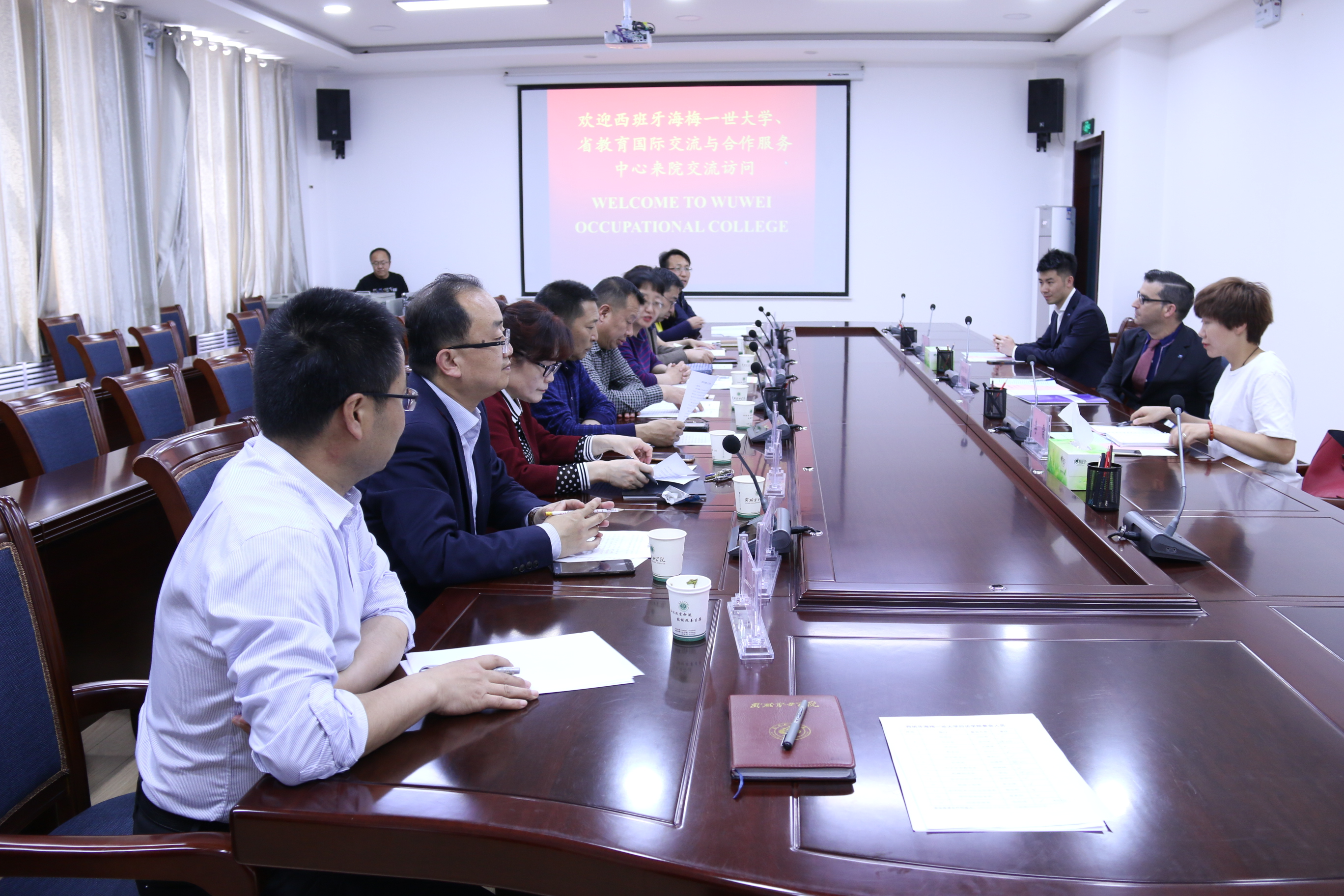 座談會(huì)上,田迎春代表全院師生對(duì)海梅一世大學(xué)回訪學(xué)院表示歡迎,對(duì)海梅一世大學(xué)時(shí)隔一年再次訪問學(xué)院表示敬佩,對(duì)省國際交流與合作服務(wù)中心對(duì)學(xué)院的關(guān)心表示感謝,并向來訪客人簡要介紹了學(xué)院建設(shè)發(fā)展情況、學(xué)科專業(yè)設(shè)置、學(xué)院國際交流與合作開展情況。來訪客人對(duì)學(xué)院友好熱情的工作安排表示感謝,對(duì)學(xué)院積極致力于開展國際合作與交流的努力和遠(yuǎn)見表示贊賞。賓主雙方通過PPT展示、VIDEO播放等形式介紹了各自基本情況,雙方共同希望能夠采取切實(shí)可行的舉措,進(jìn)一步深化務(wù)實(shí)合作,落實(shí)兩校簽署的合作框架協(xié)議。賓主雙方還就校際交流、師資互訪、語言培訓(xùn)、赴西班牙專升碩留學(xué)項(xiàng)目等共同關(guān)心的問題進(jìn)行了深入交流。