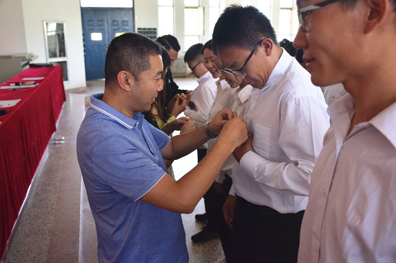 羅小勇為新黨員佩戴黨徽,并代表學(xué)院黨委對新入黨的56名預(yù)備黨員表示熱烈的祝賀和歡迎。他強(qiáng)調(diào),作為預(yù)備黨員,一要恪守入黨誓詞,踐行莊嚴(yán)承諾,堅(jiān)定不移地從思想和行動上與黨組織保持高度一致,牢固樹立“四個意識”,增強(qiáng)“四個自信”,堅(jiān)決做到“兩個維護(hù)”,激發(fā)奮發(fā)向上的學(xué)習(xí)、生活和工作熱情,努力營造踏實(shí)務(wù)實(shí)的學(xué)習(xí)氛圍;二要充分發(fā)揮先鋒模范作用,在各自的學(xué)習(xí)生活中體現(xiàn)黨的先進(jìn)性,成為同學(xué)中的旗幟標(biāo)桿力量;三要牢記全心全意為人民服務(wù)的宗旨,努力實(shí)踐,立志成為中國特色社會主義事業(yè)奮斗終身的有用人才。