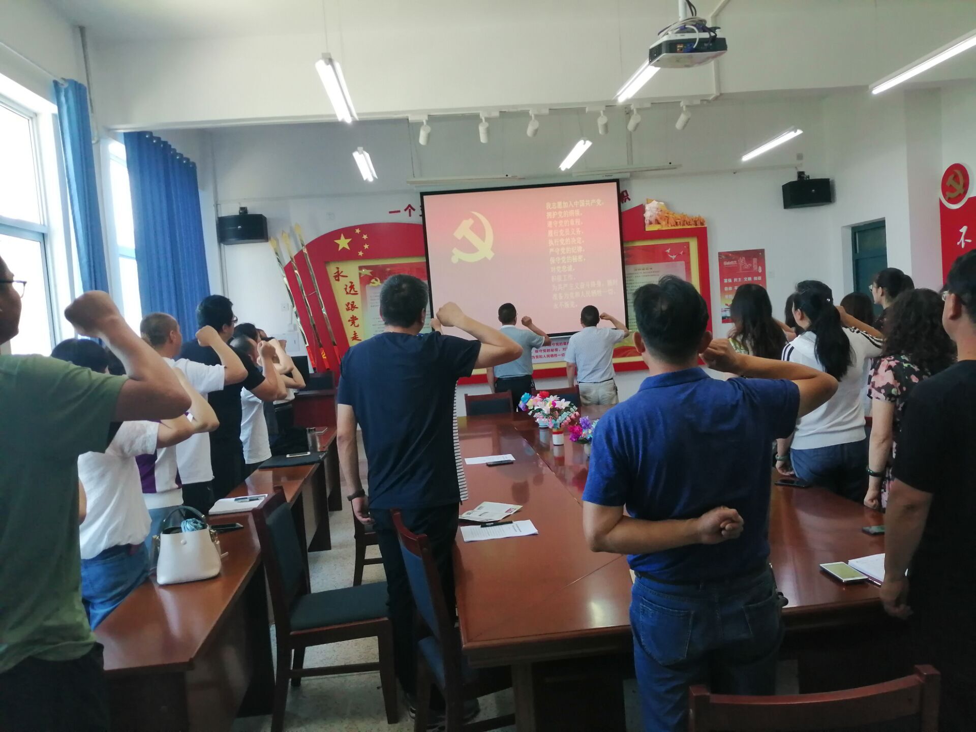 黨總支書記胡靜峰宣讀了中國共產(chǎn)黨預備黨員名單。在胡靜峰同志帶領(lǐng)下預備黨員面向黨旗進行了入黨宣誓,其他黨員重溫了入黨誓詞。預備黨員劉心代表預備黨員進行了表態(tài)發(fā)言。