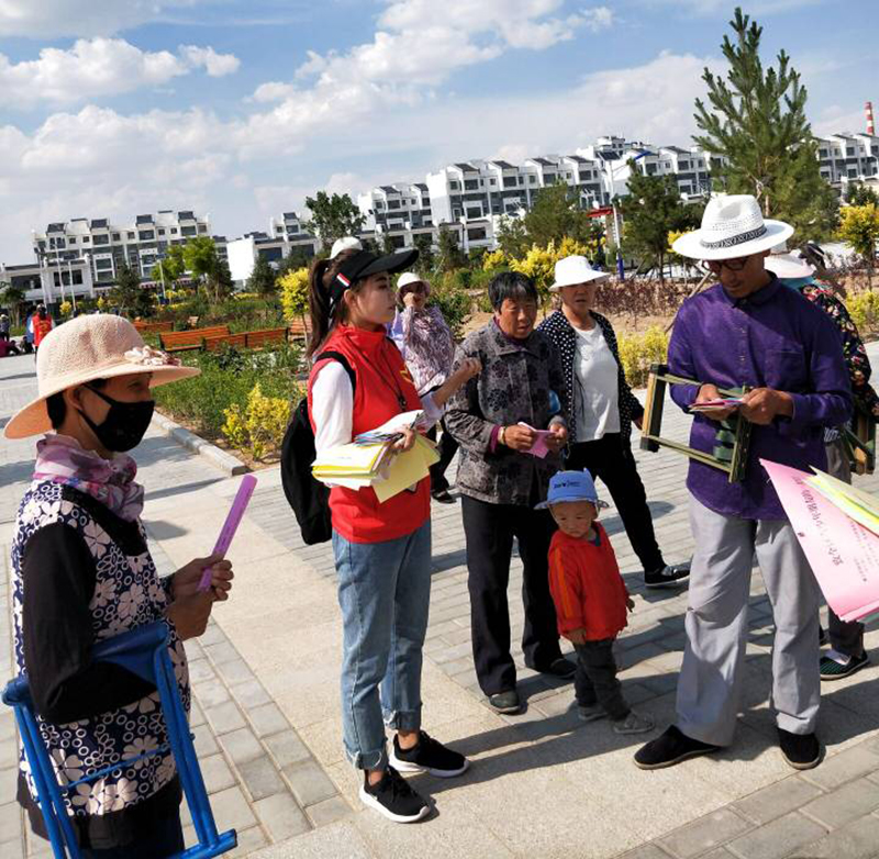 7月11日開始, 6名志愿者在指導老師的帶領下分別進入倉巷社區(qū)銀城花園、天馬湖公園、古浪縣綠洲移民點、永豐鎮(zhèn)、發(fā)放鎮(zhèn)、天馬社區(qū)、清源鎮(zhèn)幸福家園社區(qū)、金沙社區(qū)、福利路社區(qū)、古城鎮(zhèn)祁山村、武南鎮(zhèn)、清水鎮(zhèn)等地開展了宣講實踐活動。通過擺放展板、實地講解、發(fā)放禁毒防艾宣傳材料、問卷調(diào)查、個案訪談、資料收集等方式,深入了解實踐地禁毒防艾最新形勢、相關(guān)工作開展情況、存在的實際問題。