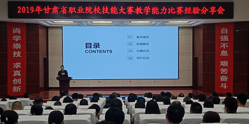 2019年全省職業(yè)院校技能大賽教學(xué)能力比賽于7月1日至7月5日在甘肅省交通職業(yè)技術(shù)學(xué)院舉行,學(xué)院6件作品23名教師參加比賽,并取得了優(yōu)異的成績(jī)。7月8日學(xué)院舉辦了比賽經(jīng)驗(yàn)分享會(huì),各相關(guān)部門、單位負(fù)責(zé)人、中青年骨干教師、兼職教師、教務(wù)處和項(xiàng)目辦相關(guān)人員共210多名教師參加。