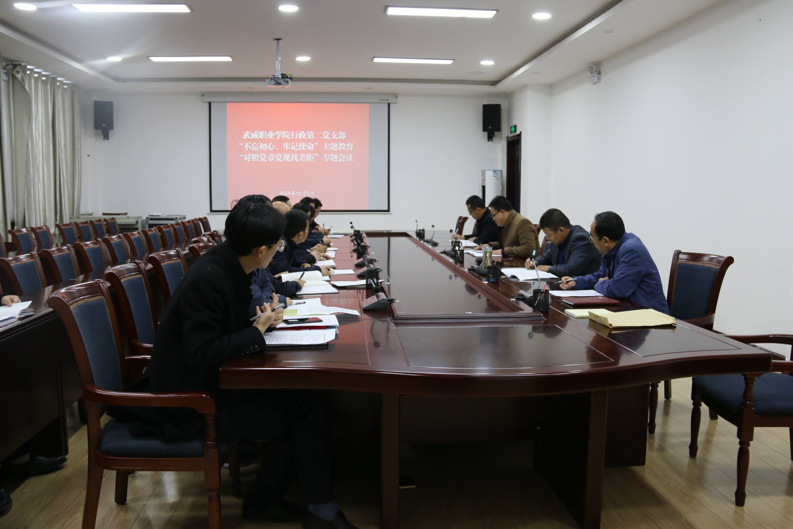 11月1日下午,行政第二黨支部在行樹樓二樓會議室召開“不忘初心、牢記使命”主題教育對照黨章黨規(guī)找差距專題會議。支部書記王繼林主持會議,行政第二黨支部全體黨員參加會議。
