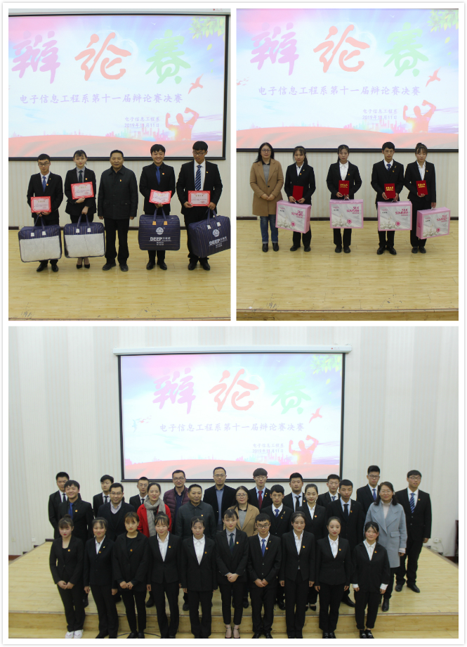2019年11月11日進(jìn)行了“集體成就個(gè)人”和“個(gè)人成就集體”為主題的辯論賽決賽。本次辯論賽共分為開(kāi)篇立論、攻辯、攻辯小結(jié)、自由辯論、總結(jié)陳詞五個(gè)環(huán)節(jié)。在整個(gè)比賽中,雙方辯手爭(zhēng)鋒相對(duì),步步緊逼,在最精彩的自由辯論環(huán)節(jié),選手你來(lái)我往,旁征博引,臺(tái)下掌聲不斷。經(jīng)過(guò)緊張而又激烈的角逐, 18電子信息工程技術(shù)大專班以精彩的表現(xiàn)獲得了辯論賽的冠軍。