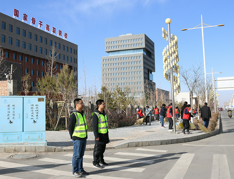 為認(rèn)真落實(shí)全市創(chuàng)城工作推進(jìn)會(huì)會(huì)議精神,提升全國(guó)文明城市創(chuàng)建工作水平,建設(shè)人民滿意的幸福城市,在市委市政府及創(chuàng)城辦的統(tǒng)一安排下,11月15日下午,在學(xué)院副院長(zhǎng)王守云、張開(kāi)禮的帶領(lǐng)下,我院100多名黨員干部組成的志愿者服務(wù)隊(duì),集中在我院的劃定區(qū)域,進(jìn)行常態(tài)化的文明交通勸導(dǎo)和環(huán)境衛(wèi)生整治活動(dòng)。