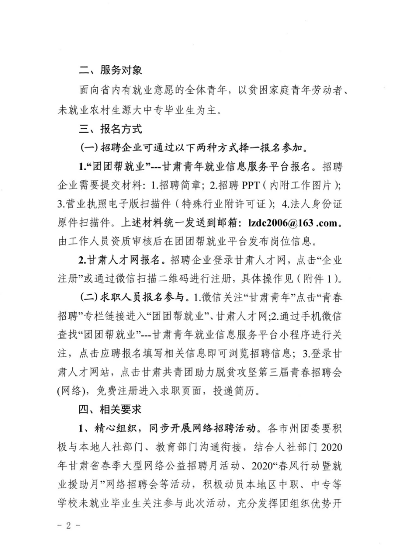 關于組織開展甘肅共青團助力脫貧攻堅第三屆青春招聘會(網(wǎng)絡)活動的通知