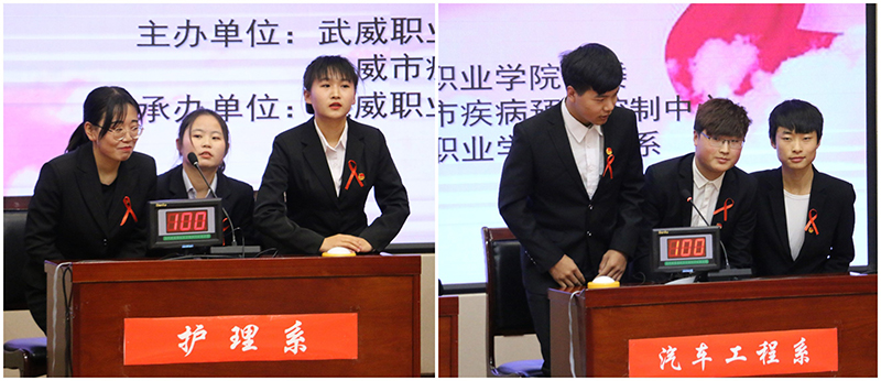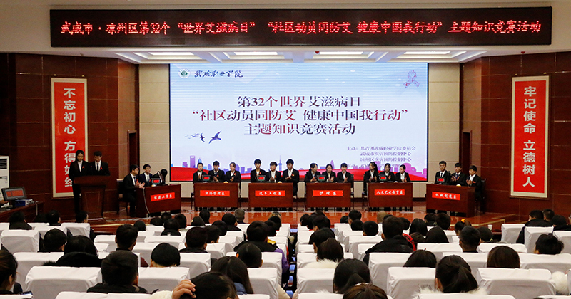 為持續(xù)深入推進(jìn)大學(xué)生艾滋病預(yù)防教育工作,迎接第32個(gè)世界艾滋病日的到來(lái), 12月1日晚,學(xué)院開(kāi)展了艾滋病知識(shí)競(jìng)賽活動(dòng),學(xué)院副院長(zhǎng)王永緒、王守云,市疾控中心領(lǐng)導(dǎo)參加活動(dòng)。此次活動(dòng)由武威職業(yè)學(xué)院與武威市疾控中心聯(lián)合主辦,護(hù)理系承辦,活動(dòng)的主題為“社區(qū)動(dòng)員同防艾 .健康中國(guó)我行動(dòng)”。學(xué)院團(tuán)委及部分系老師,各系學(xué)生代表觀看了比賽。