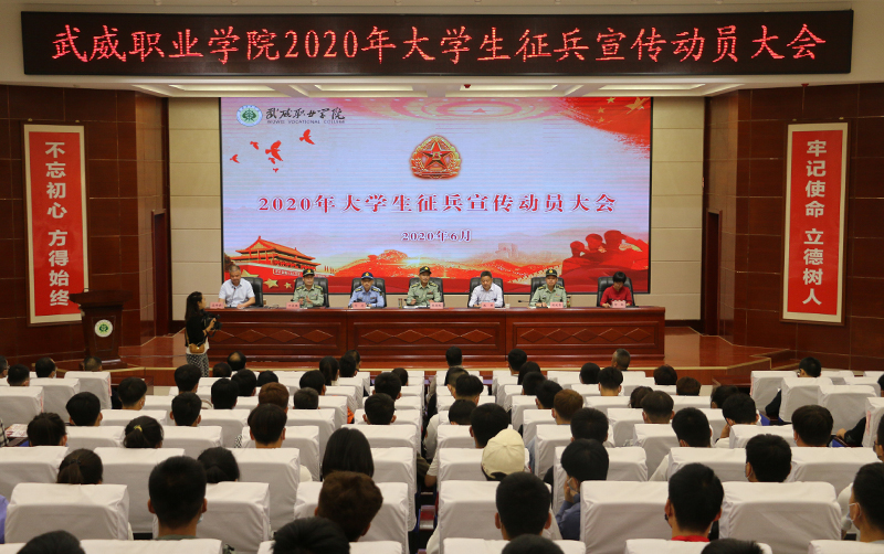 6月10日上午,學(xué)院2020年大學(xué)生征兵宣傳動員大會在菁英廳舉行。武威軍分區(qū)司令員張國輝、武威軍分區(qū)動員處處長劉忠、涼州區(qū)人武部部長闞延貴、涼州區(qū)人武部政委丁俊強(qiáng),學(xué)院黨委書記、院長趙明,副院長何毅出席會議。各院系負(fù)責(zé)人、輔導(dǎo)員和學(xué)生代表共200人參加了會議。會議由副院長王守云主持。