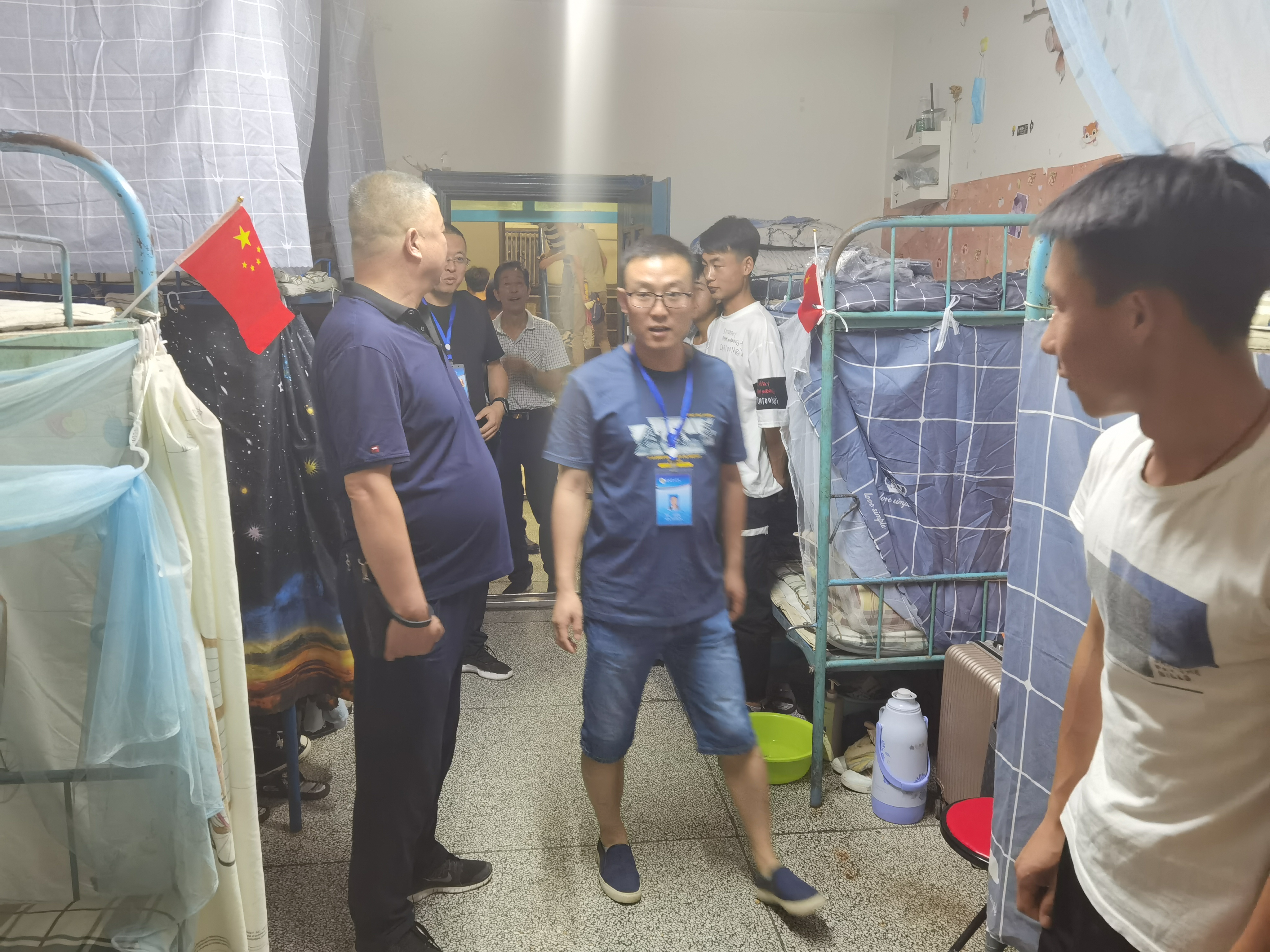 ? 6月26日晚,學(xué)院副院長(zhǎng)王守云,保衛(wèi)處處長(zhǎng)王政,學(xué)工處副處長(zhǎng)高鵬堂,教師姚斌一行深入我系學(xué)生宿舍,實(shí)地視察和慰問我系返校學(xué)生生活狀態(tài)。