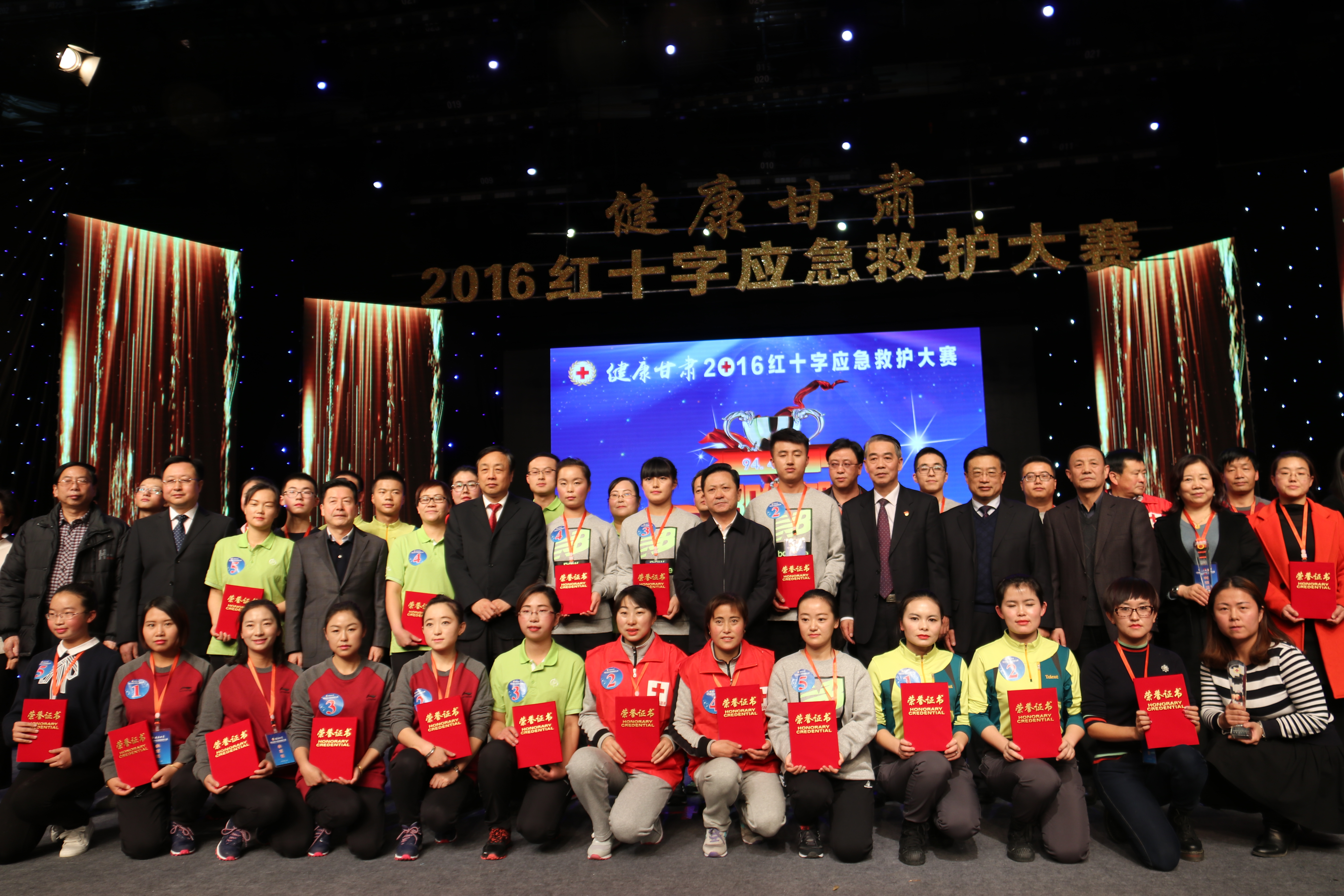 健康甘肅2016紅十字應(yīng)急救護(hù)大賽于12月24日在蘭州隆重召開。本次大賽由省衛(wèi)計(jì)委、省紅十字會聯(lián)合舉辦,來自全省各地的十三支代表隊(duì)參加了本次大賽。大賽分為初賽和決賽兩個(gè)階段,參賽項(xiàng)目包括理論知識競賽和場景操作兩部分。