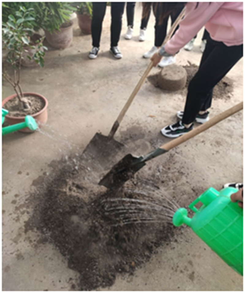 種植體驗活動前,為了讓學(xué)生更好地了解種植知識,張老師給同學(xué)們講解了植物種植的條件、如何根據(jù)季節(jié)選擇種植的種類,以及育苗、澆水、施肥、防蟲過程中的注意事項。在活動中,學(xué)生與老師合作完成種菜任務(wù),一起探討種植經(jīng)驗、勞動技能。