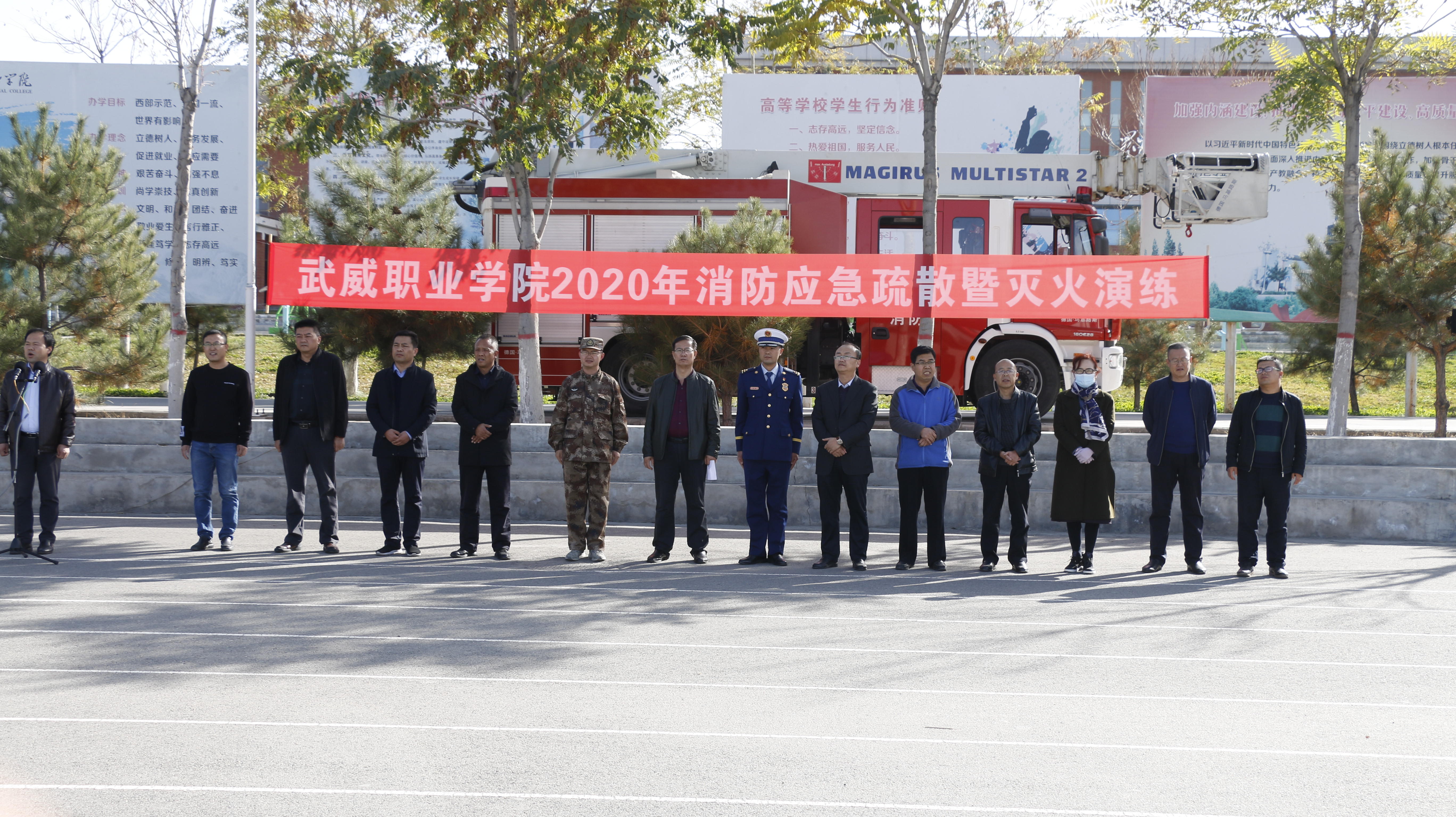 10月21日下午,學院聯(lián)合涼州區(qū)消防救援中隊舉行了2020年消防應急疏散和滅火演練活動。學院副院長張開禮、涼州區(qū)消防救援中隊指導員李躍興出席活動,保衛(wèi)處、學生工作處、各教學院系負責同志現(xiàn)場觀摩演練,約4300多名2020級新生參加了演練?。