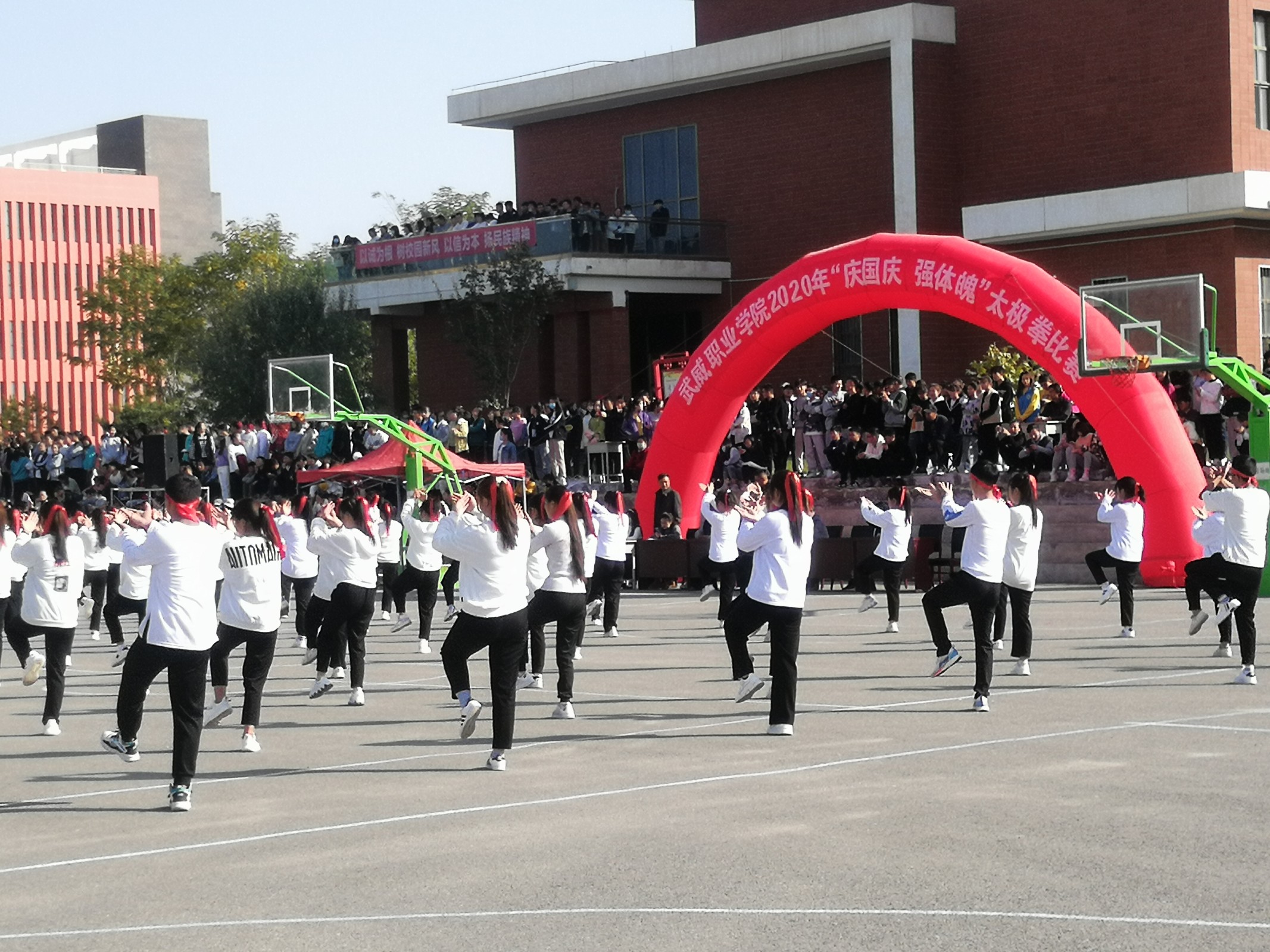 為慶祝中華人民共和國成立71周年,認(rèn)真貫徹習(xí)近平總書記關(guān)于“健康中國2030”規(guī)劃綱要重要指示,積極創(chuàng)建全國文明城市,倡導(dǎo)“陽關(guān)體育運動”,進一步推進我系師生積極健身,增強師生體質(zhì)健康,豐富和活躍校園體育文化生活,展示我系師生積極向上的嶄新精神風(fēng)貌,我系于10月12日在大學(xué)生活動中心北操場參加太極拳比賽活動。