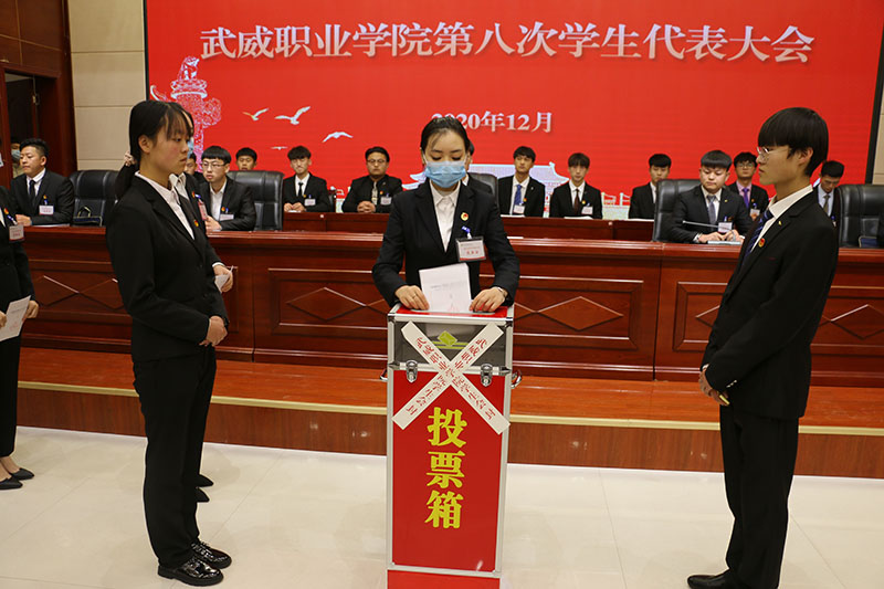 大會審議通過了《武威職業(yè)學(xué)院第七屆學(xué)生會工作報(bào)告》《武威職業(yè)學(xué)院學(xué)生會章程》,肯定了過去一年工作取得的成績,提出今后一年改革發(fā)展的目標(biāo)和任務(wù)。大會本著“公平、公正、公開”的原則,以無記名投票的形式,通過民主選舉產(chǎn)生了第八屆學(xué)生會主席團(tuán)。