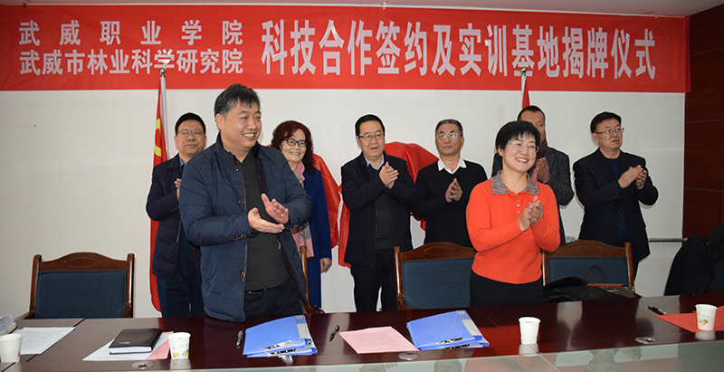 為了全面落實《教育部、甘肅省人民政府關(guān)于整省推進職業(yè)教育發(fā)展打造“技能甘肅”的意見》和“2020年全國職業(yè)教育教師企業(yè)實踐基地推進會”等會議精神,進一步推動鄉(xiāng)村振興和創(chuàng)新驅(qū)動戰(zhàn)略的實施,大力推進生態(tài)文明建設(shè),全面提升教師的科技創(chuàng)新能力、實踐教學(xué)水平和學(xué)生的職業(yè)技能,為我院“雙高”建設(shè)添磚加瓦,1月25日上午,學(xué)院與武威市林業(yè)科學(xué)研究院舉行了科技合作協(xié)議簽約暨教師實踐基地和學(xué)生實訓(xùn)基地揭牌儀式。武威市林業(yè)和草原局黨組書記、局長戴繼春,武威市林業(yè)科學(xué)研究院院長張勤德,副院長張強威、張金學(xué),學(xué)院副院長何毅、教務(wù)處處長仲生仁、招生就業(yè)處處長蔡柱山、現(xiàn)代農(nóng)業(yè)技術(shù)系黨總支書記晏素珍、林科院專業(yè)技術(shù)人員代表和現(xiàn)代農(nóng)業(yè)技術(shù)系教師代表等出席了簽約暨揭牌儀式,林科院副院長張強威主持儀式。