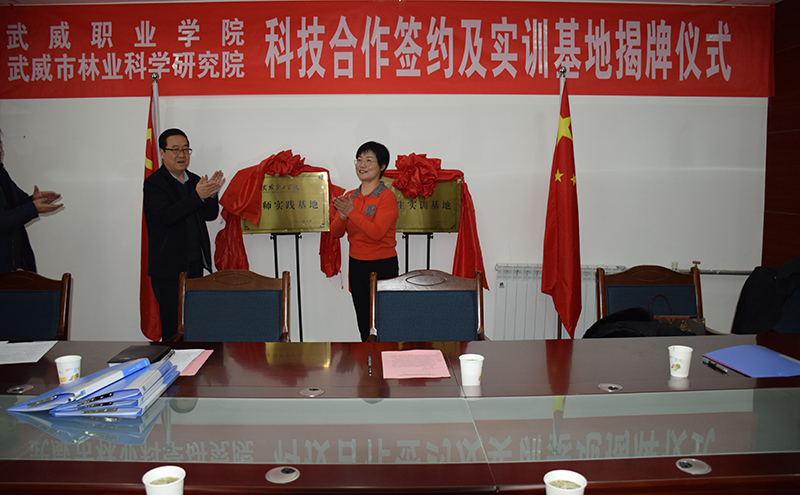 武威市林業(yè)和草原局黨組書記、局長戴繼春,學(xué)院黨委委員、副院長何毅為武威職業(yè)學(xué)院實踐實訓(xùn)基地和學(xué)生實習(xí)實訓(xùn)基地揭牌。