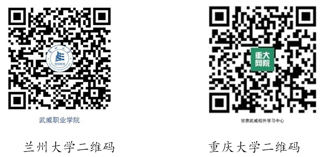 2.蘭州大學(xué)、重慶大學(xué)網(wǎng)絡(luò)教育報(bào)名老師電話(劉老師:18993563255)。疫情期間,為減少人員接觸,選擇報(bào)考蘭州大學(xué)、重慶大學(xué)的學(xué)員可通過(guò)二維碼預(yù)報(bào)名,預(yù)報(bào)名后等報(bào)名人員電話通知后再來(lái)學(xué)校進(jìn)行信息確認(rèn)和提交報(bào)名材料