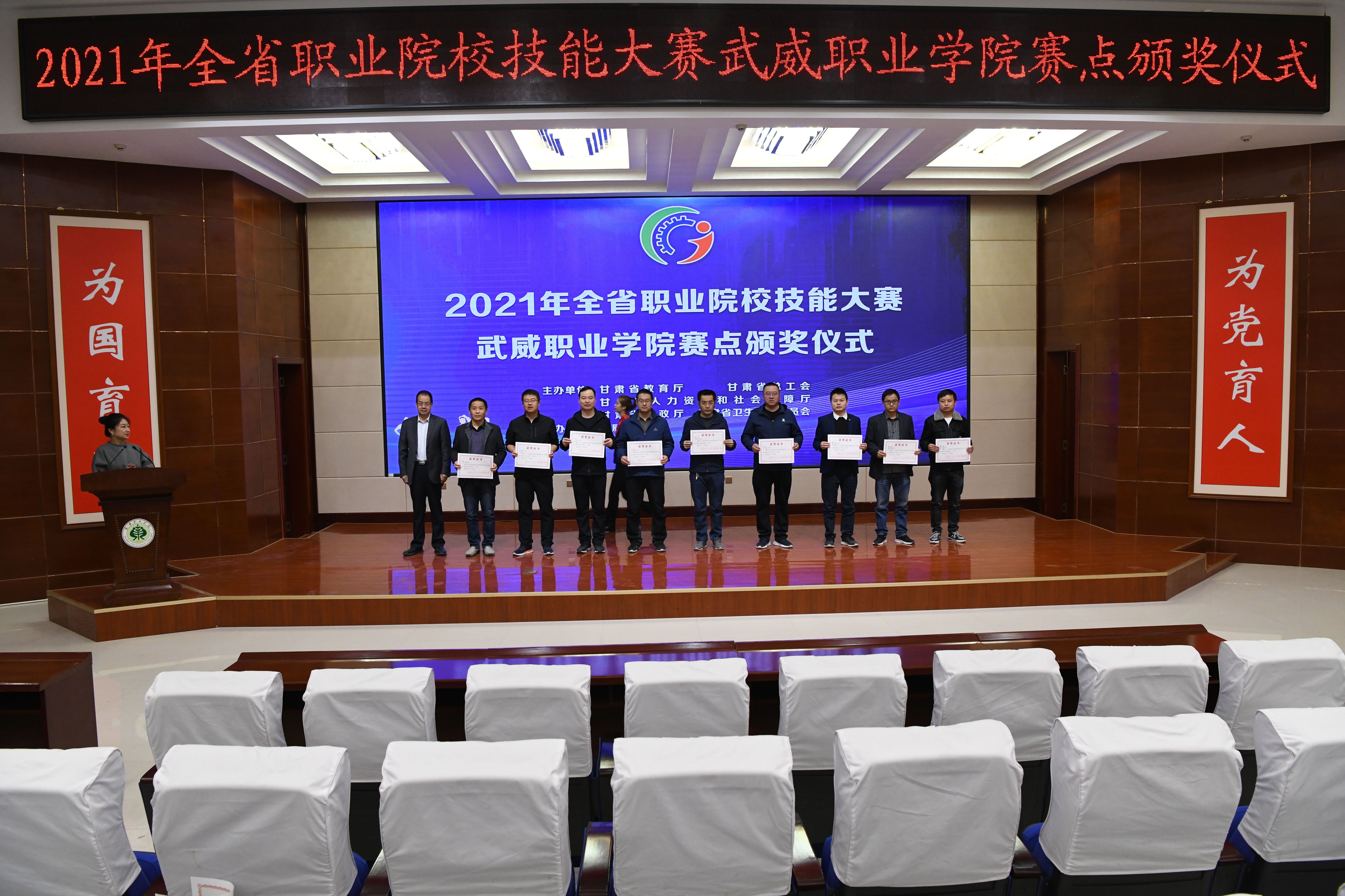 4月19日,2021年甘肅省職業(yè)院校技能大賽物聯(lián)網(wǎng)應(yīng)用技術(shù)賽項(xiàng)(中職教師組)頒獎(jiǎng)儀式在學(xué)院菁英廳舉行。學(xué)院黨委副書(shū)記翟存祥為21名獲獎(jiǎng)教師頒獎(jiǎng),至此,物聯(lián)網(wǎng)應(yīng)用技術(shù)賽項(xiàng)(中職教師組)圓滿完成。