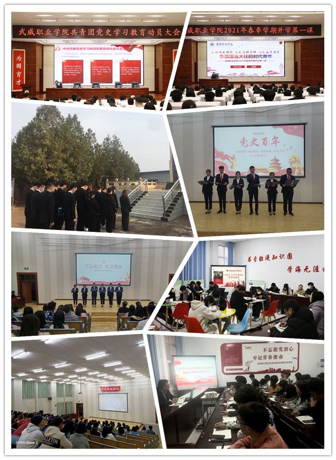 全力做“好”黨史學(xué)習(xí)教育。院團(tuán)委積極響應(yīng)、認(rèn)真研究團(tuán)中央《關(guān)于在全團(tuán)開展“學(xué)黨史、強(qiáng)信念、跟黨走”黨史學(xué)習(xí)教育的通知》,深刻領(lǐng)會(huì)學(xué)院黨委開展黨史學(xué)習(xí)教育的實(shí)施方案,對(duì)學(xué)院共青團(tuán)黨史學(xué)習(xí)教育做了科學(xué)規(guī)劃和統(tǒng)籌部署。一是成立了學(xué)院共青團(tuán)黨史學(xué)習(xí)教育領(lǐng)導(dǎo)小組,確保黨史學(xué)習(xí)教育整體推進(jìn)有“主心骨”。二是對(duì)開展黨史學(xué)習(xí)教育進(jìn)行專題研究,群策群力制定了《武威職業(yè)學(xué)院共青團(tuán)關(guān)于開展“學(xué)黨史、強(qiáng)信念、跟黨走”黨史學(xué)習(xí)教育的實(shí)施方案》并下發(fā)了《武威職業(yè)學(xué)院黨史學(xué)習(xí)重點(diǎn)工作時(shí)間安排表》,明確思路、制定舉措,確保黨史學(xué)習(xí)教育有“定心丸”。三是召開了黨史學(xué)習(xí)教育動(dòng)員暨部署會(huì),確保黨史學(xué)習(xí)教育有“強(qiáng)心劑”。