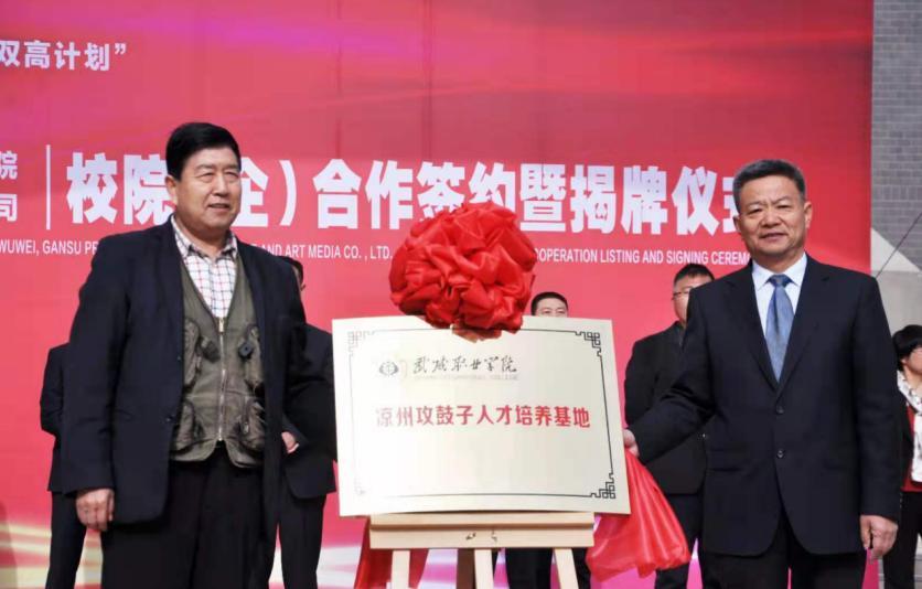 4月27日,學(xué)院與武威市涼州文化研究院、甘肅武威攻鼓子文化藝術(shù)傳媒有限公司“校(院)企戰(zhàn)略合作”簽約暨揭牌儀式在學(xué)院圖書館前廣場(chǎng)舉行。