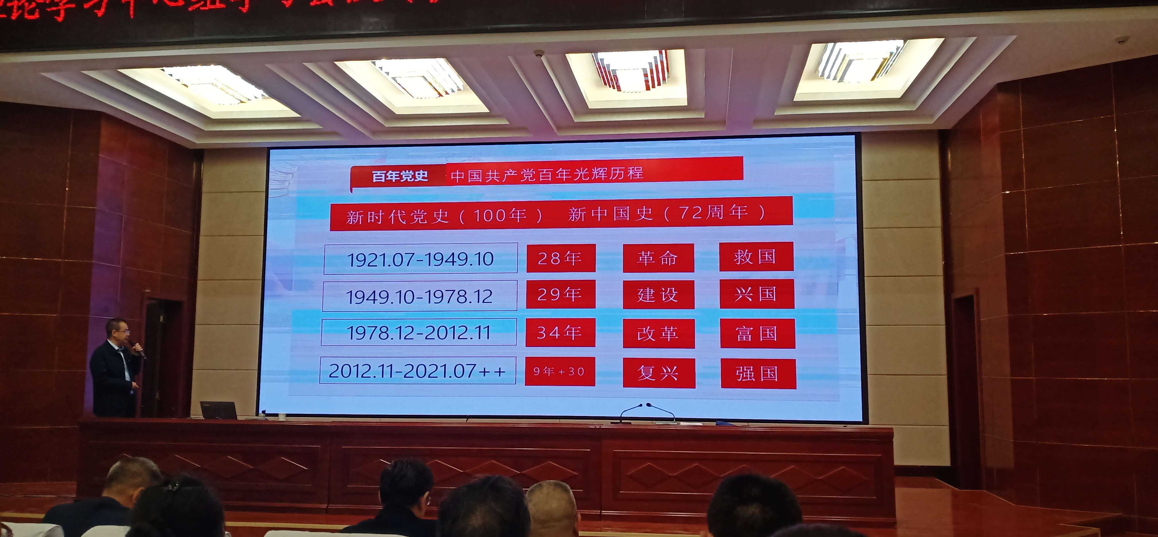 翟存祥教授以《光輝的歷程》為題,詳細(xì)講解了黨的百年歷史分成的四個(gè)歷史時(shí)期、兩大奇跡和只有中國共產(chǎn)黨才能拯救中國等內(nèi)容。通過學(xué)習(xí),黨員教師進(jìn)一步深入了解了中國共產(chǎn)黨百年黨。