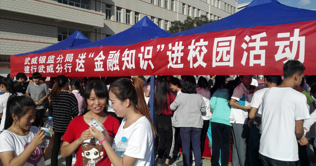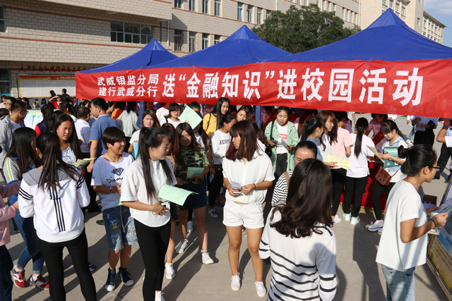 為幫助和引導大學生群體牢固樹立金融安全意識,9月13日下午,武威銀監(jiān)分局聯(lián)合建行武威分行在武威職業(yè)學院尚德樓南操場開展了“送金融知識進校園”宣傳活動。