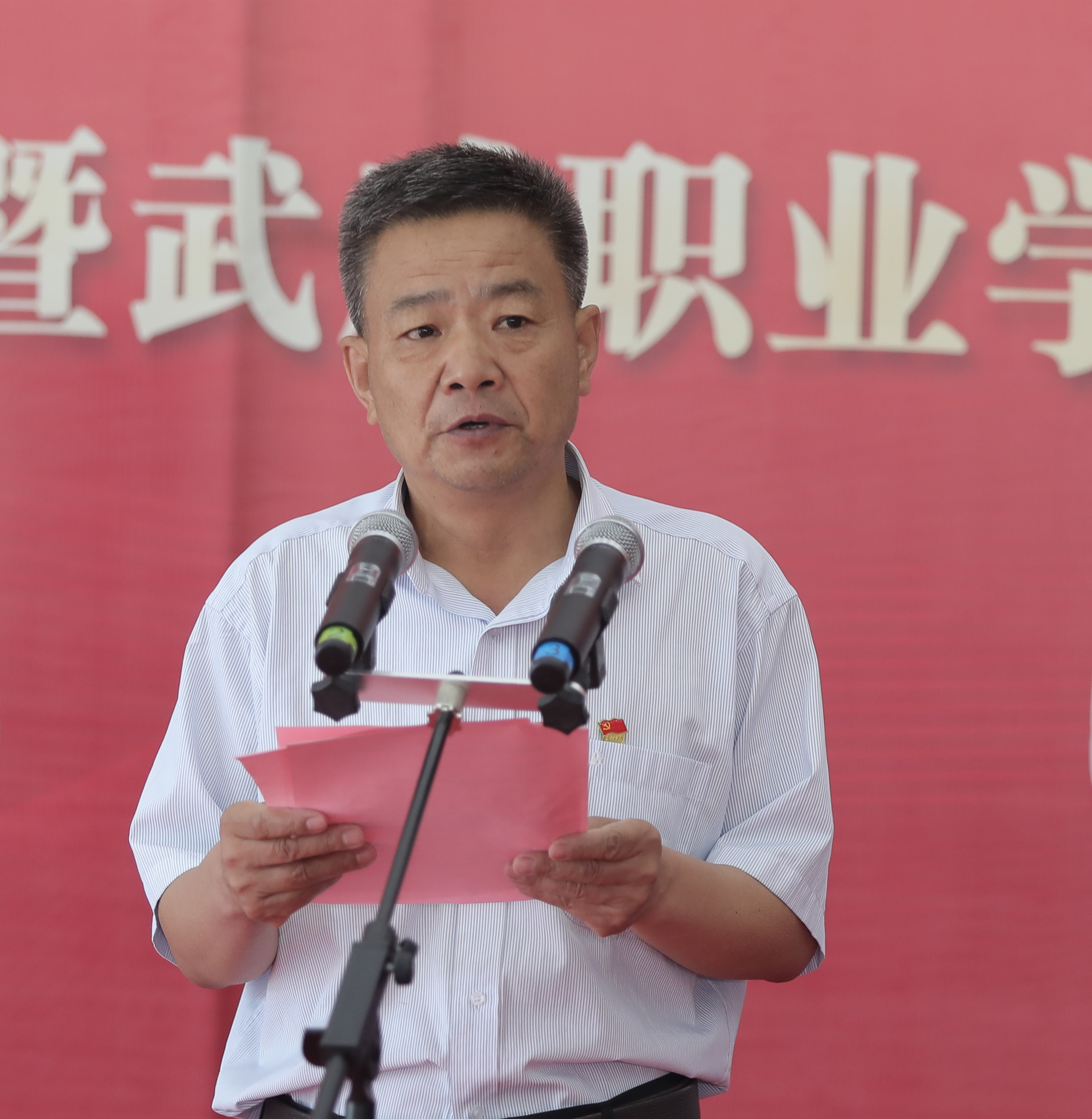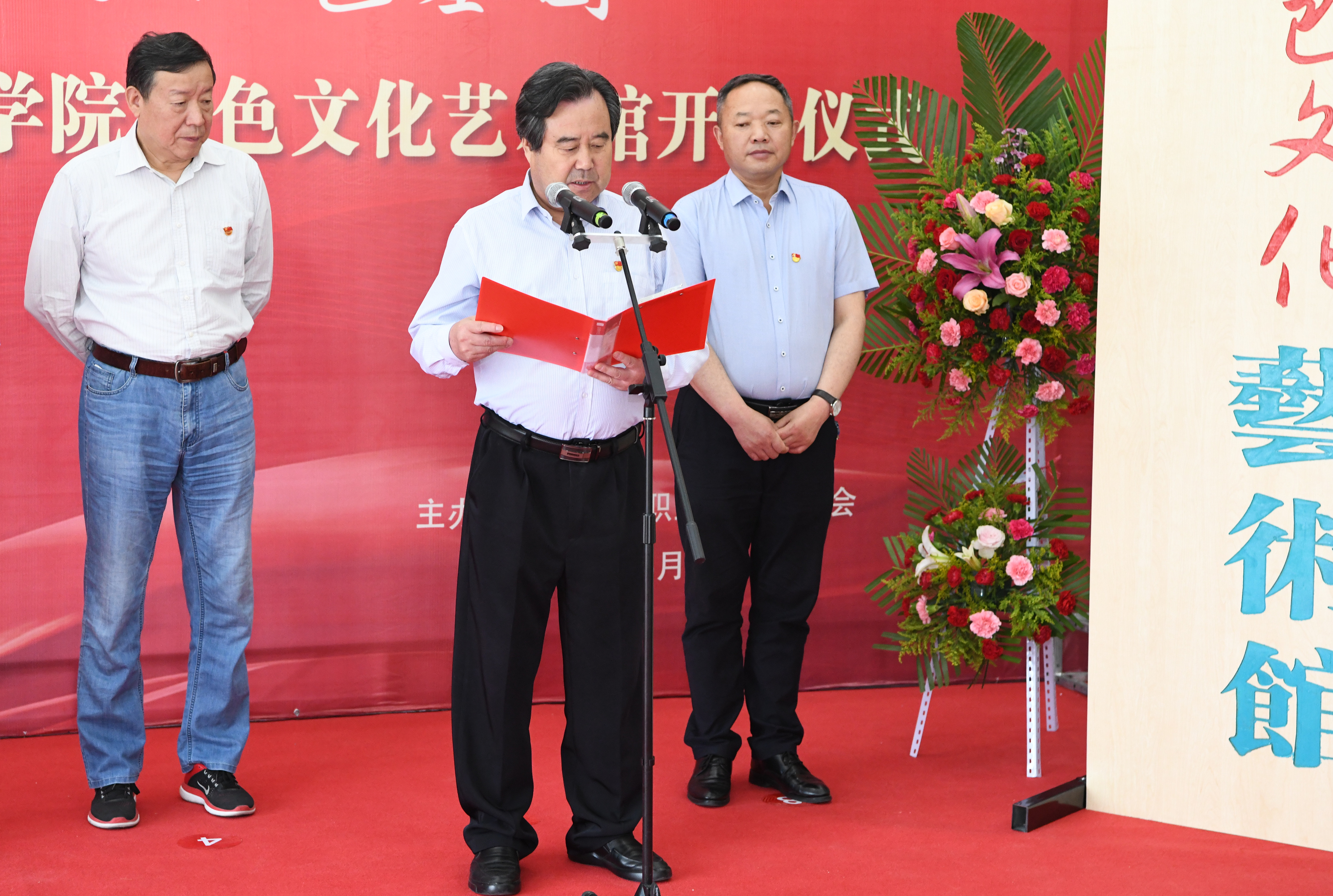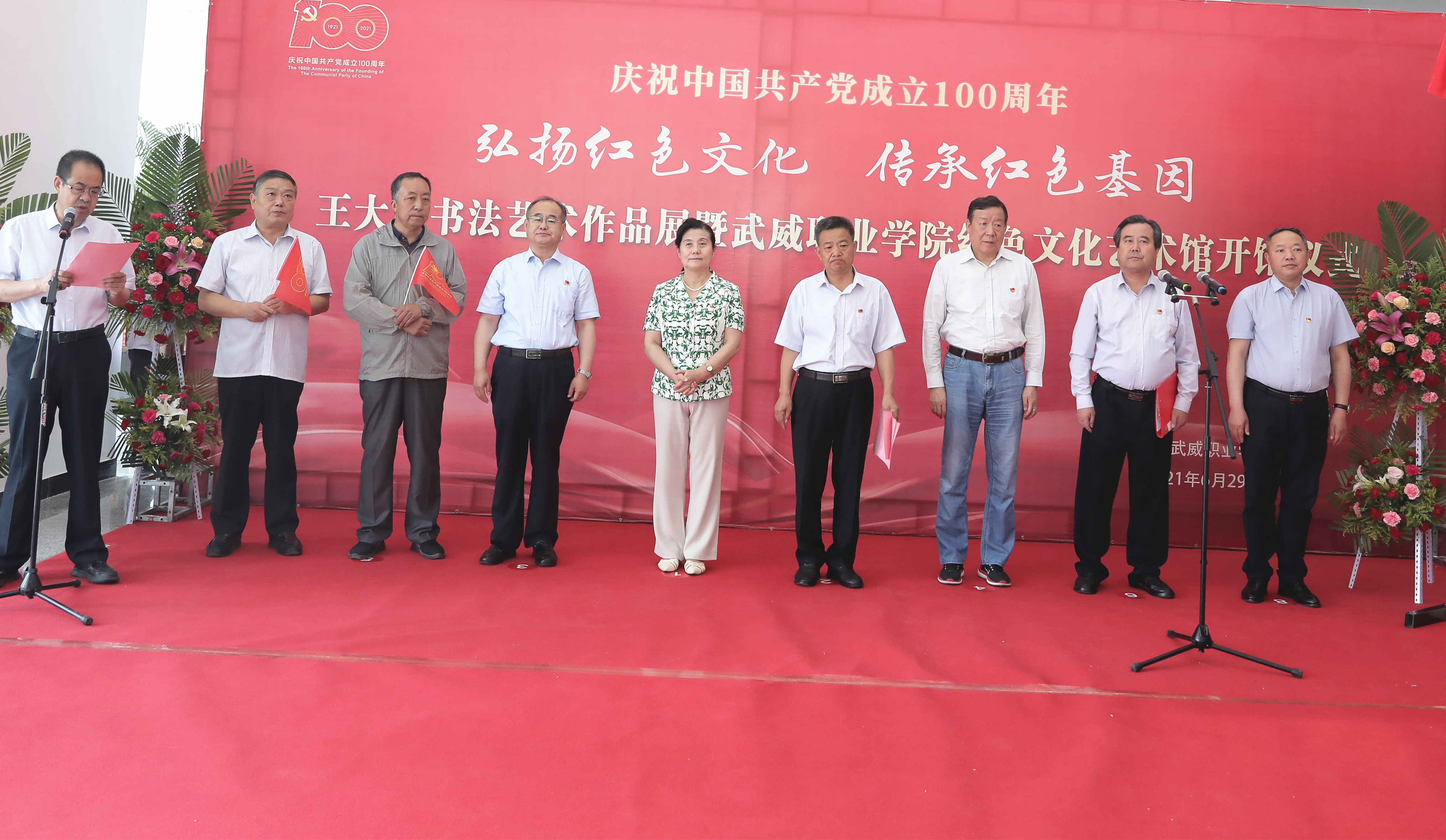 黨委書記、院長趙明在致辭中表示,在全國上下熱烈慶祝中國共產(chǎn)黨建黨100周年、深入開展黨史學(xué)習(xí)教育之際,我們迎來王大臣書法作品展開展暨武威職業(yè)學(xué)院紅色文化藝術(shù)館開館,這既是學(xué)院慶祝建黨100周年、開展黨史學(xué)習(xí)教育重要活動,也是學(xué)院“雙高計劃”院校建設(shè)的重要成果。