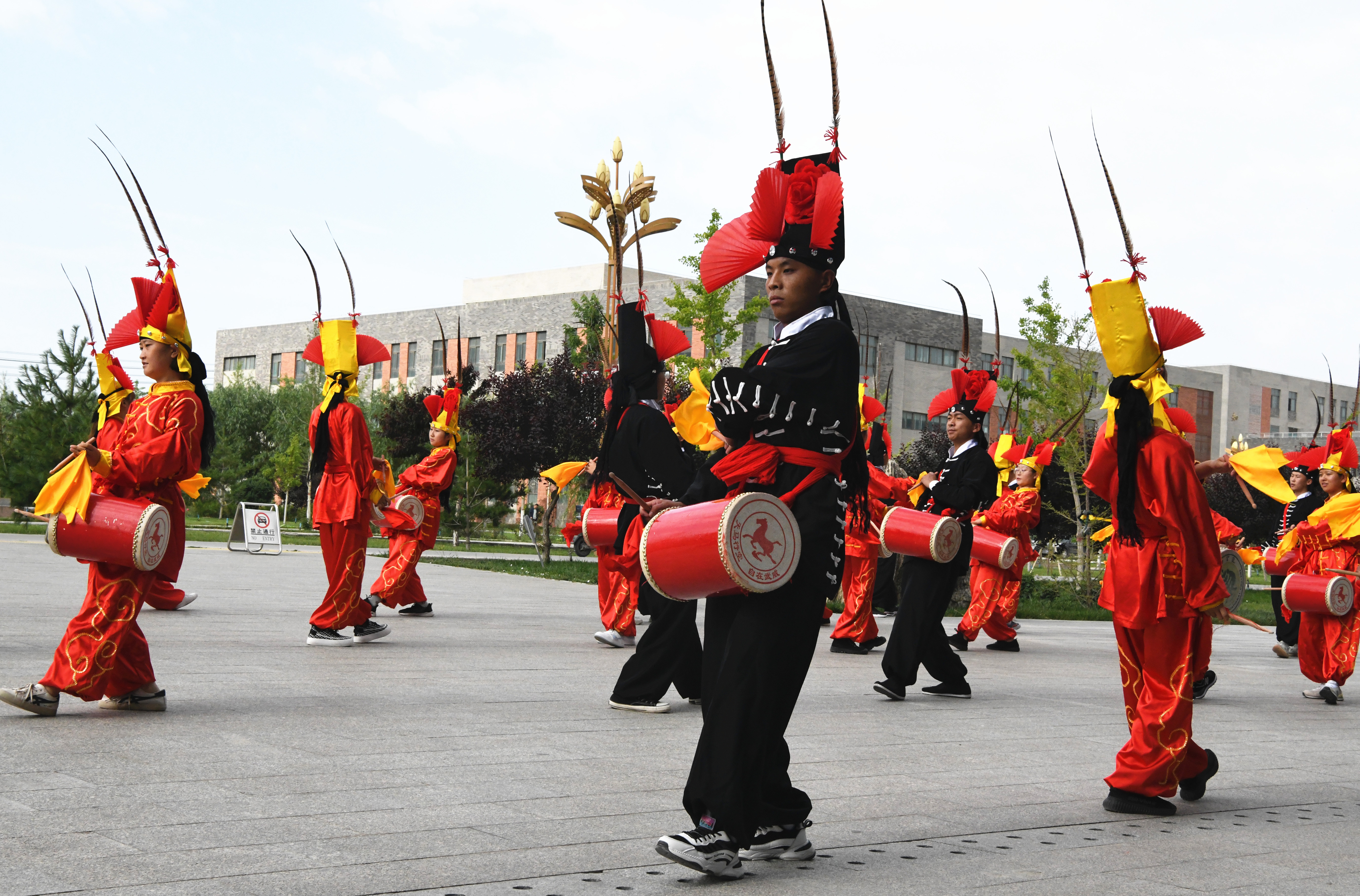 學(xué)院大學(xué)生攻鼓子藝術(shù)團進行了非物質(zhì)文化遺產(chǎn)——涼州攻鼓子表演。