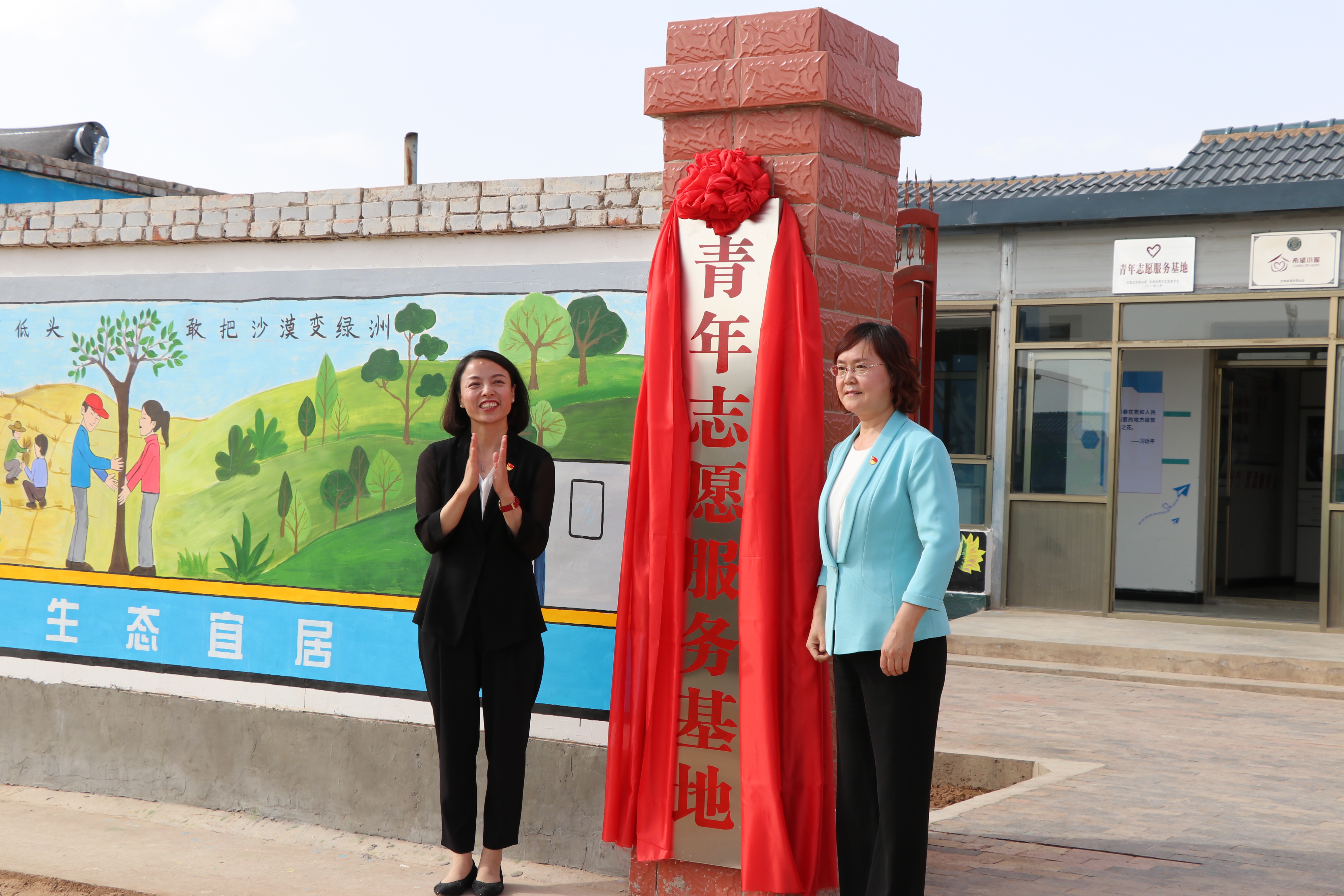 在建黨100周年、習近平總書記視察甘肅兩周年來臨之際,學(xué)院與共青團甘肅省委在古浪縣富民新村共建了青年志愿服務(wù)基地。6月21日下午,全省鄉(xiāng)村振興青年志愿者服務(wù)行動誓師大會在古浪縣富民新村召開,團省委書記蔣小麗、武威市政府副市長王雁為基地揭牌。