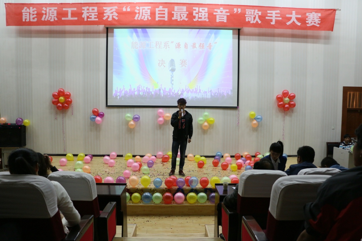 為提高學(xué)生的綜合能力,豐富大學(xué)生課余生活,提高大學(xué)生藝術(shù)素養(yǎng),能源工程系于4月11日晚在尚德樓東階梯舉行了“源自最強音”歌手大賽。系黨總支書記黃文源,能源工程系學(xué)生工作負(fù)責(zé)人黃述杰及全體師生觀看了本次比賽。